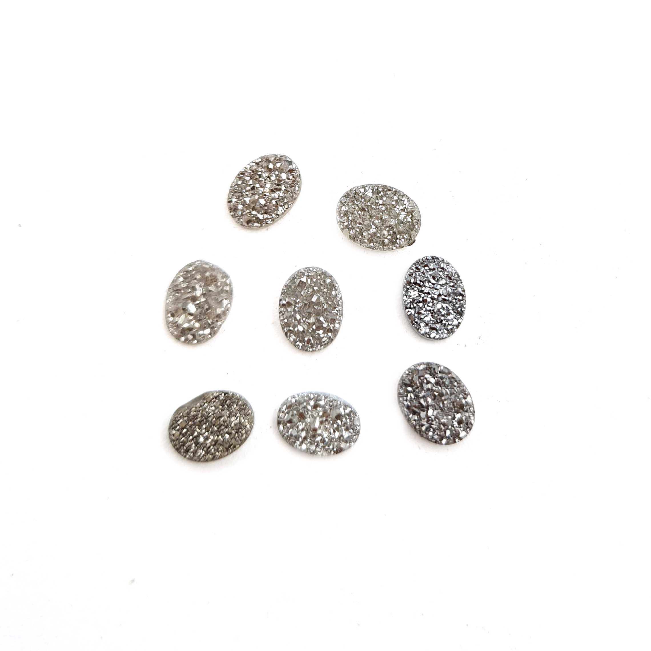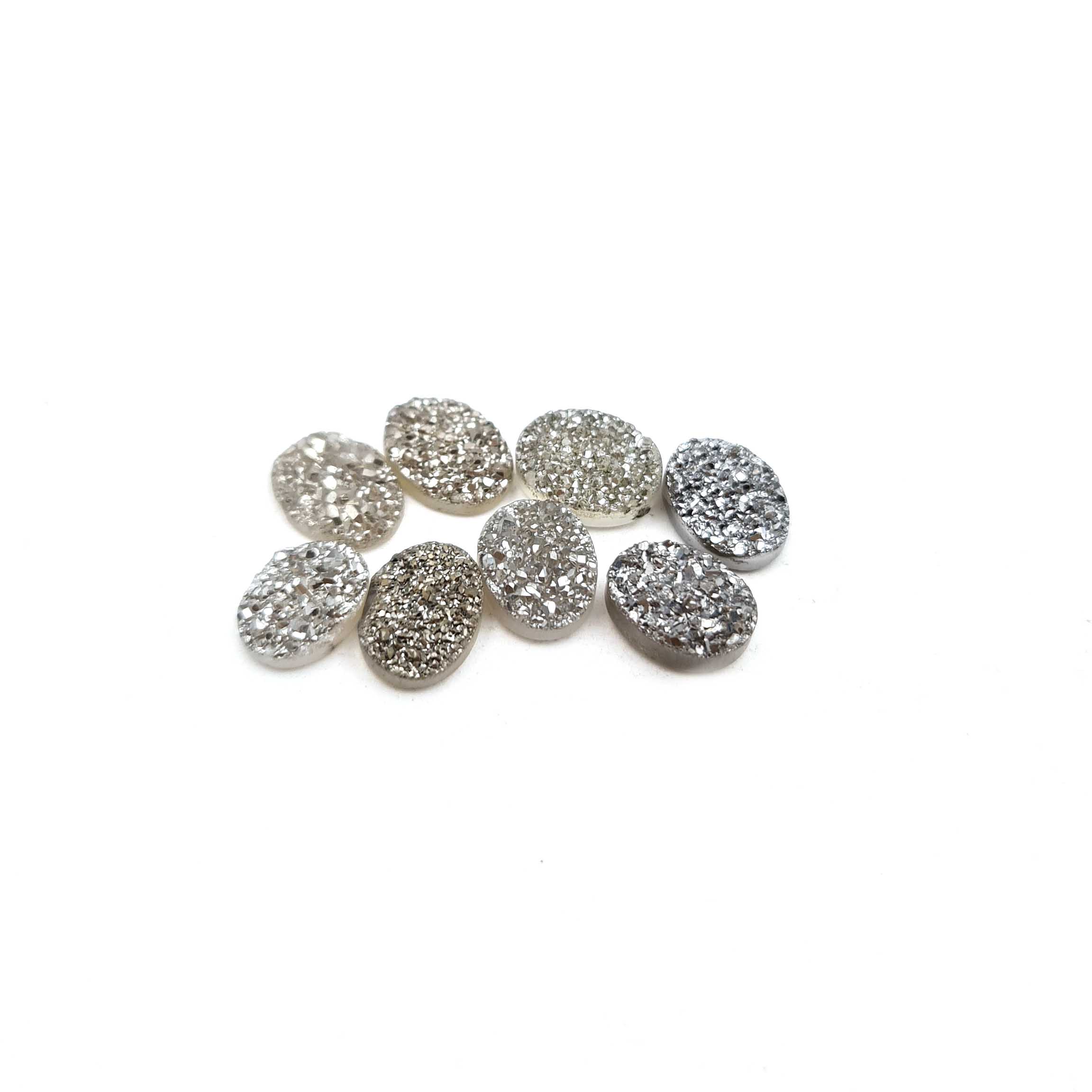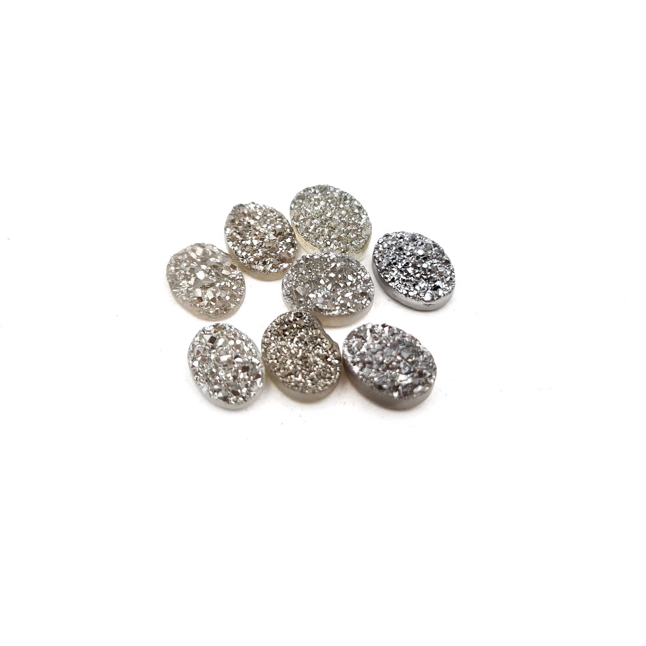Home Quartz Natural Druzy Quartz Oval Cabochon Grey Color Glitter Stone 8 Pics 6*8MM 8 CT