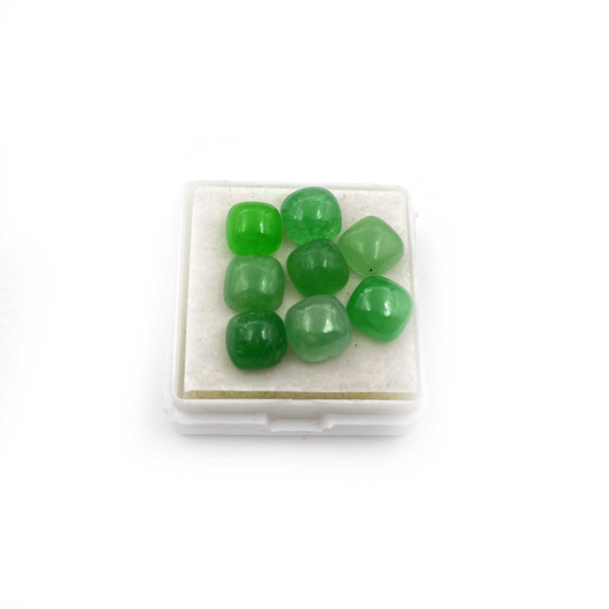 Natural Dyed Green Jade Cushion Cabochon Loose Stone Lot 8 Pcs 7 MM 14 CT