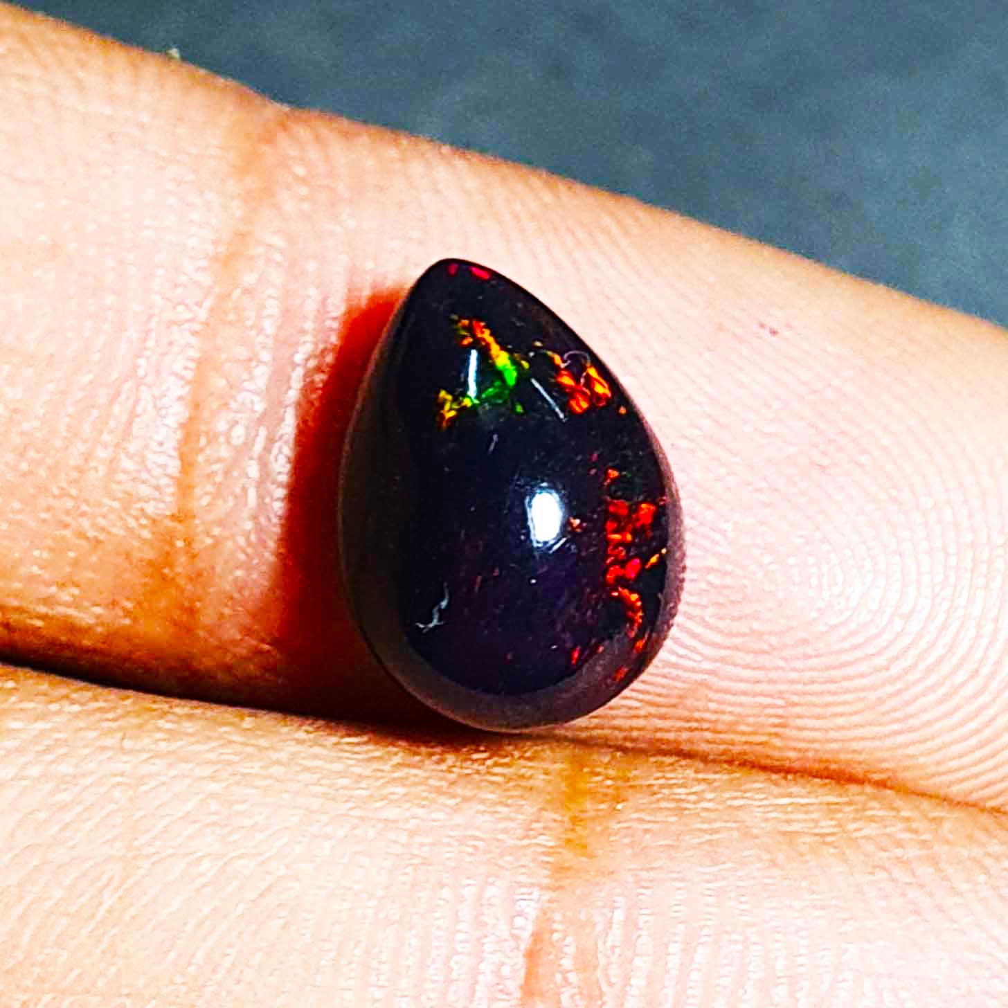 Natural Ethiopian Black Opal Pear Cabochon Loose Gemstone 9*12 MM 2.85 CT