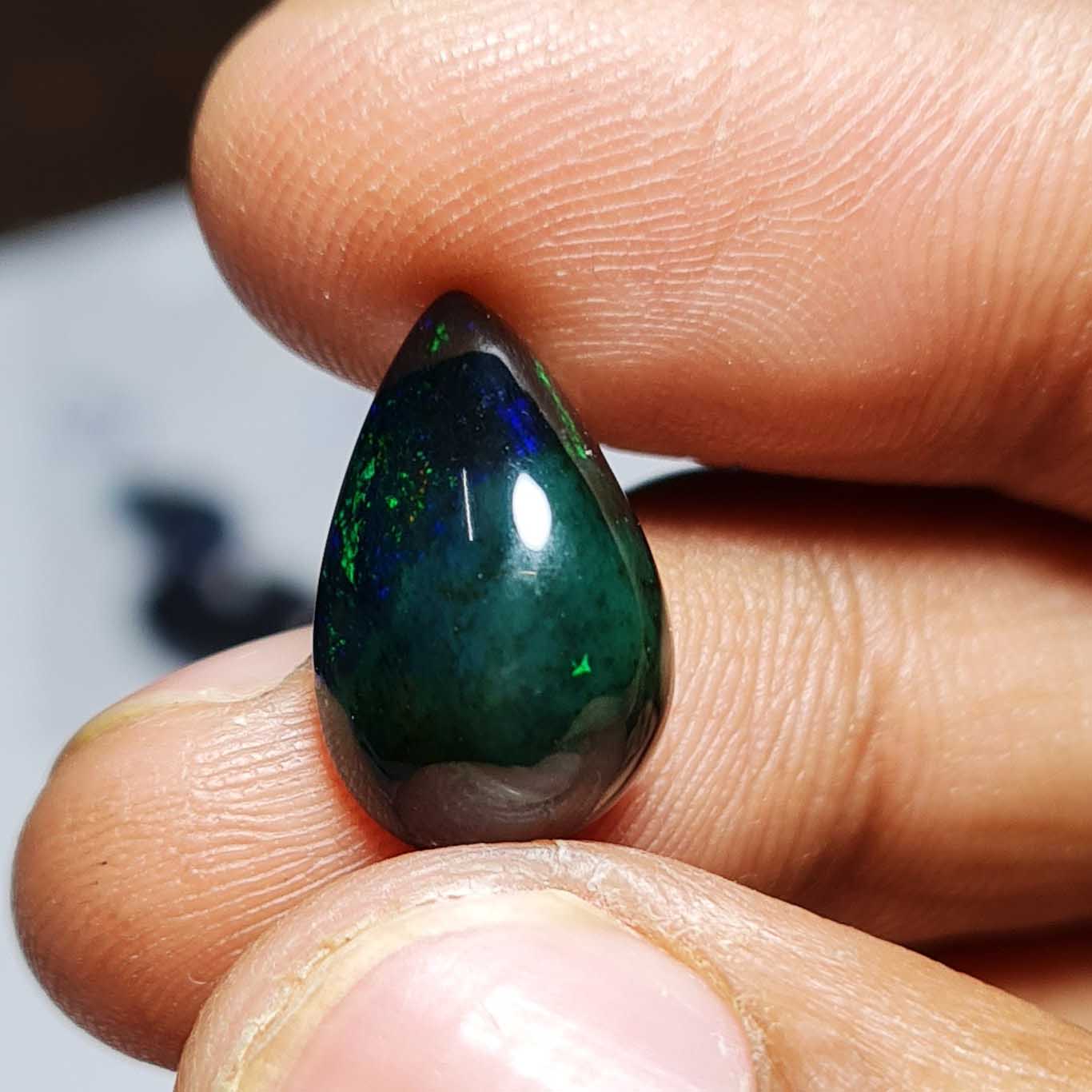 Home Opal Natural Ethiopian Black Opal Pear Cabochon Loose Stone 10.5*16.5 MM 6.95 CT