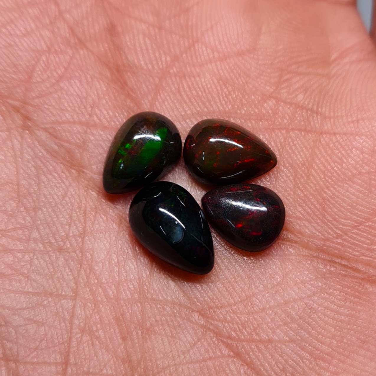 Natural Ethiopian Black Opal Pear Cabochon Stone Lot 4 Pcs 7*9-7*11 MM 5.30 CT