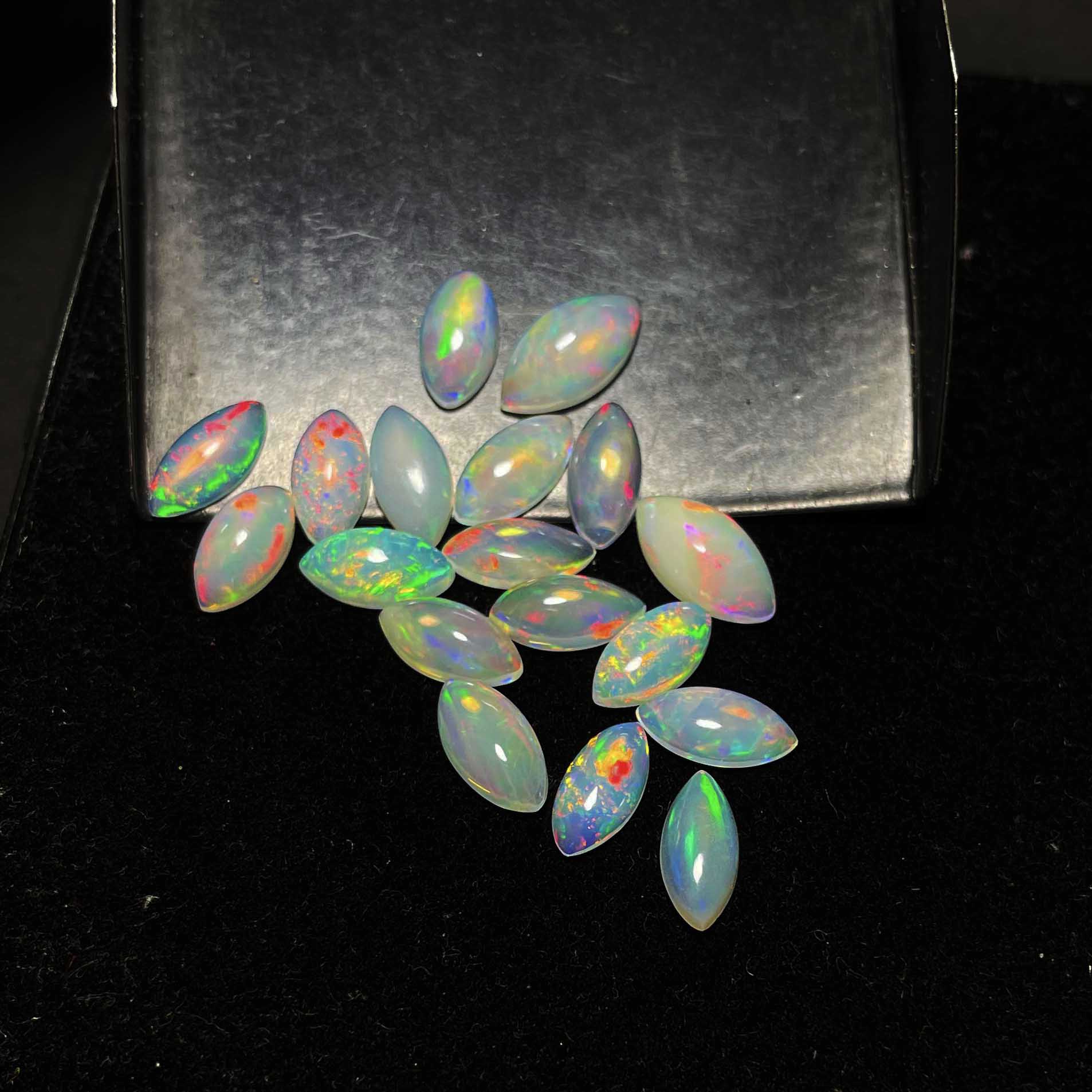 Natural Ethiopian Opal Marquise Cabochon Loose Stone Lot 2 Pcs 5*10 MM 2 CT