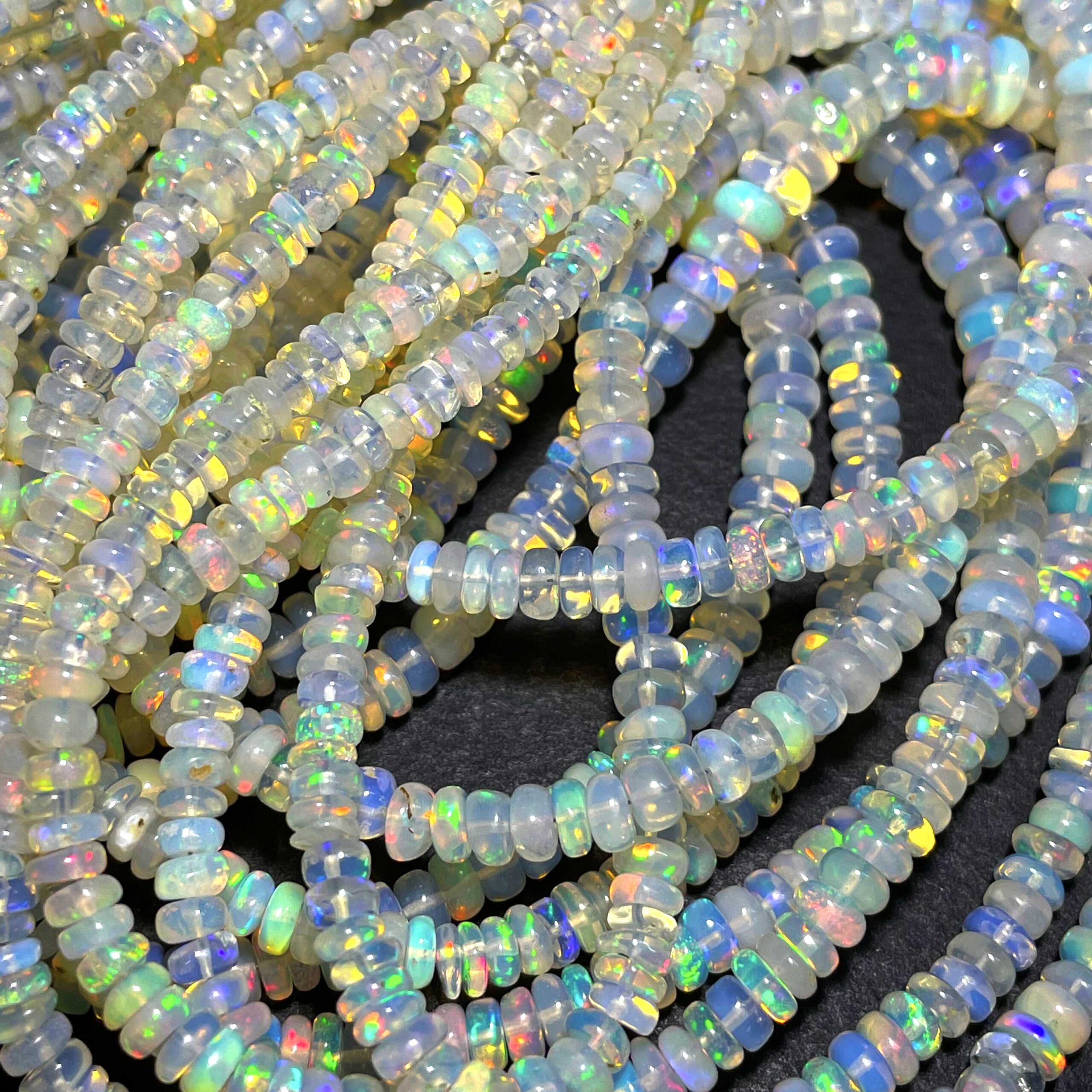 Natural Ethiopian Opal Multi Fire Gemstone Rondelle Beads 3.5-6 mm 51 CT 17 Inch
