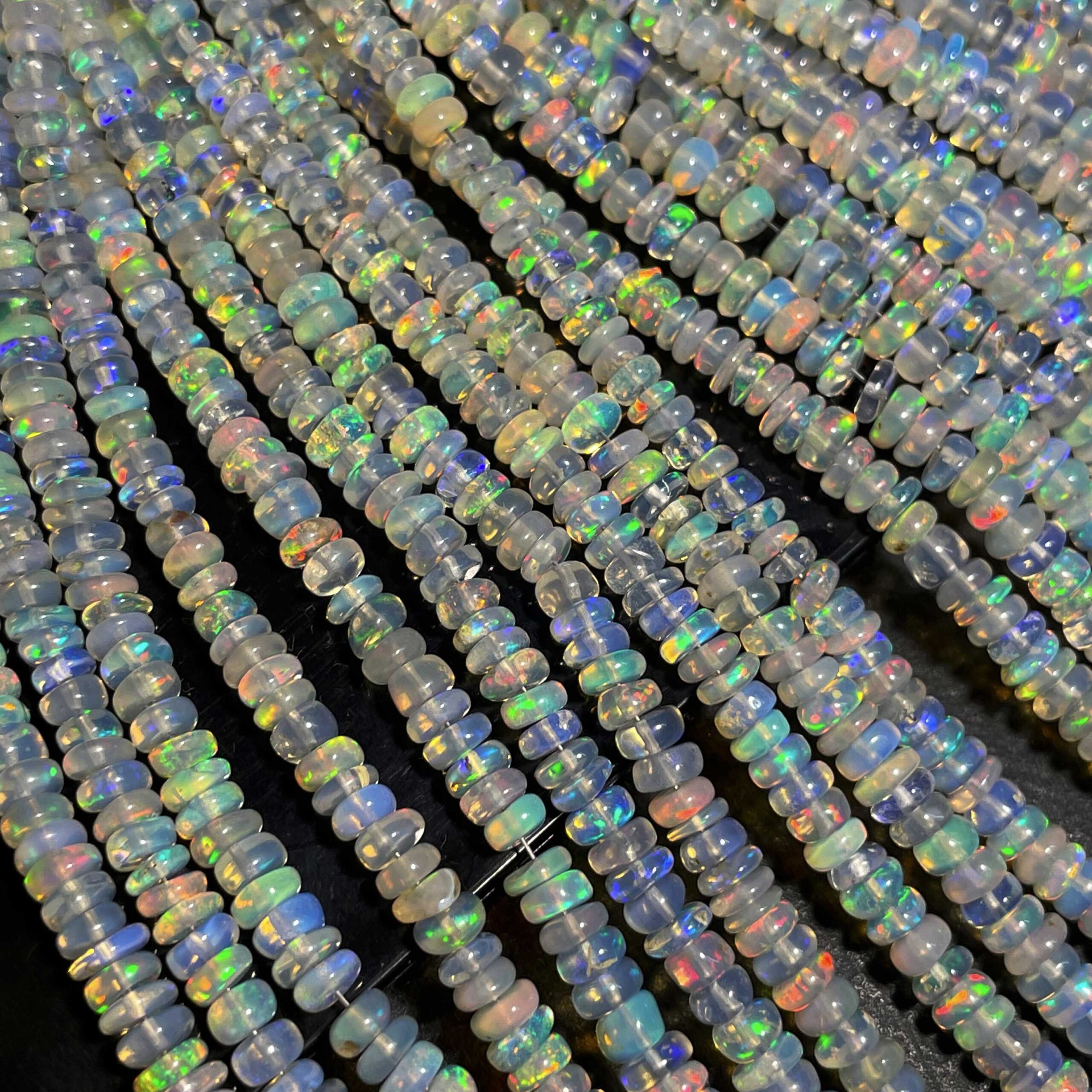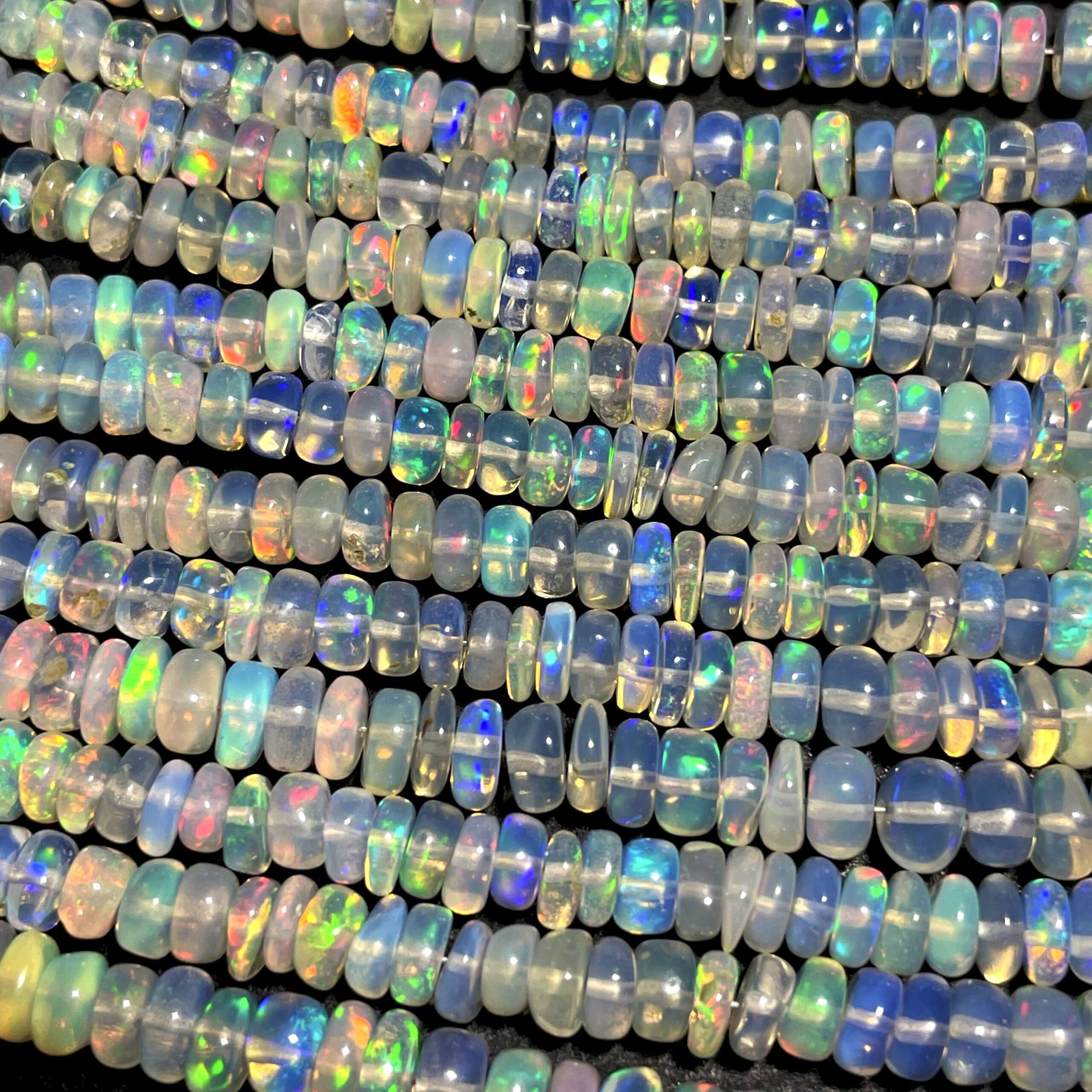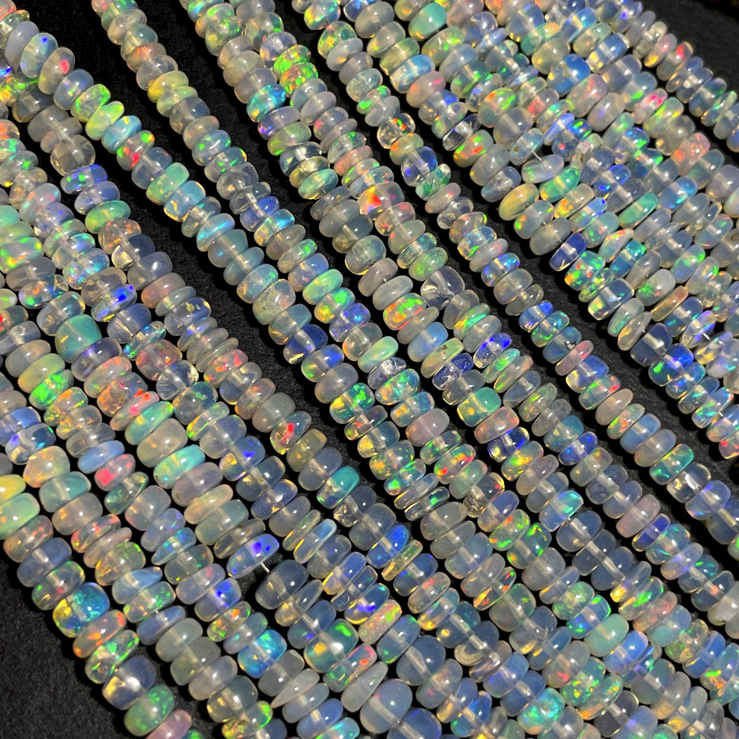Home Beads Natural Ethiopian Opal Multi Fire Gemstone Rondelle Beads 3.5-6 mm 51 CT 17 Inch