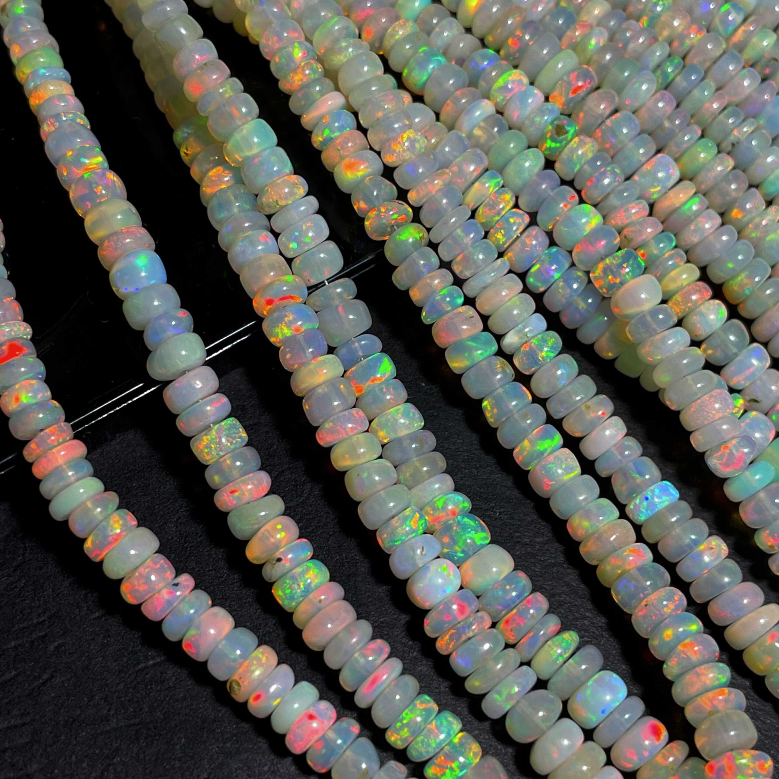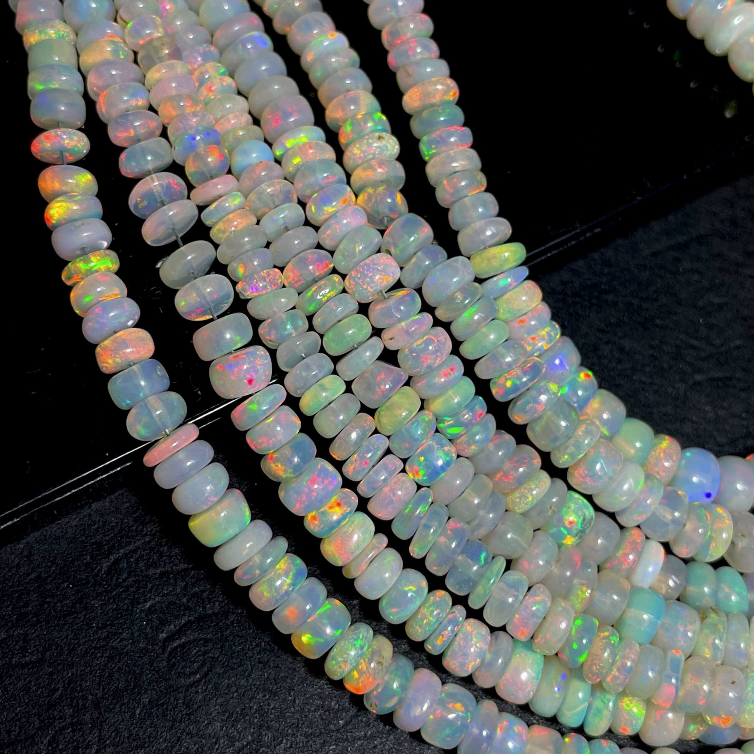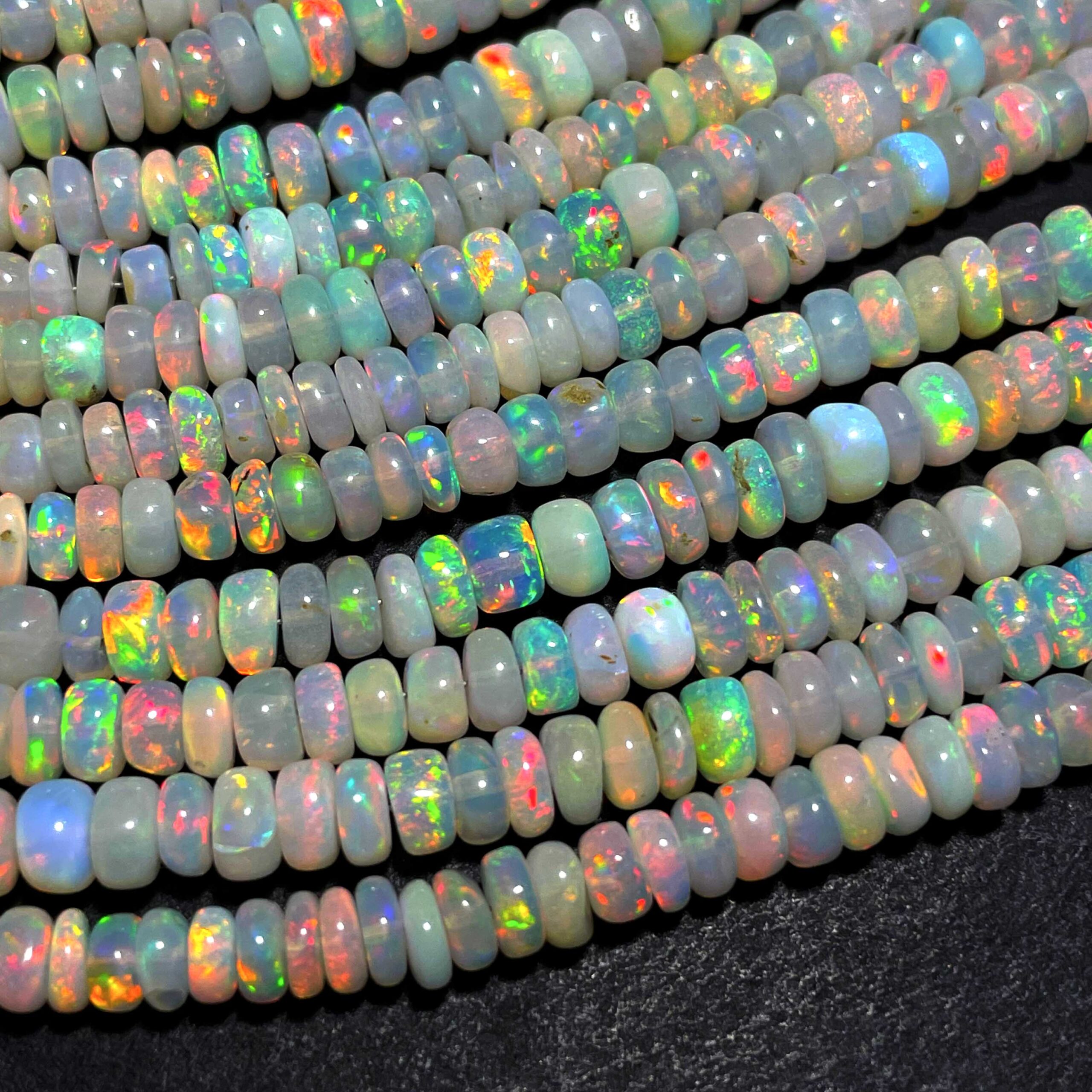 Natural Ethiopian Opal Multi Fire Gemstone Rondelle Beads 4-7 mm 54 CT 17 Inch $59.99 Original price was: $59.99.$44.99Current price is: $44.99.