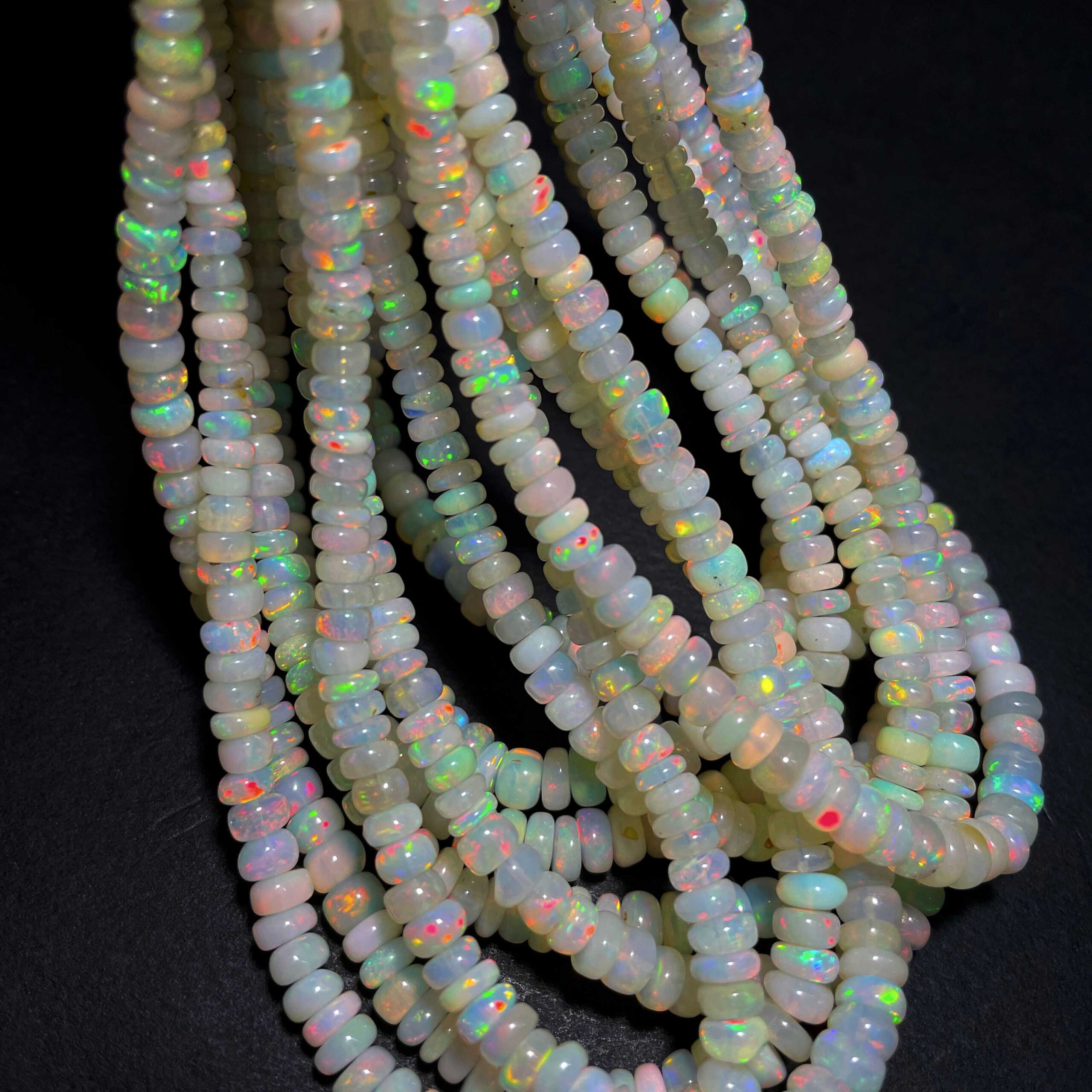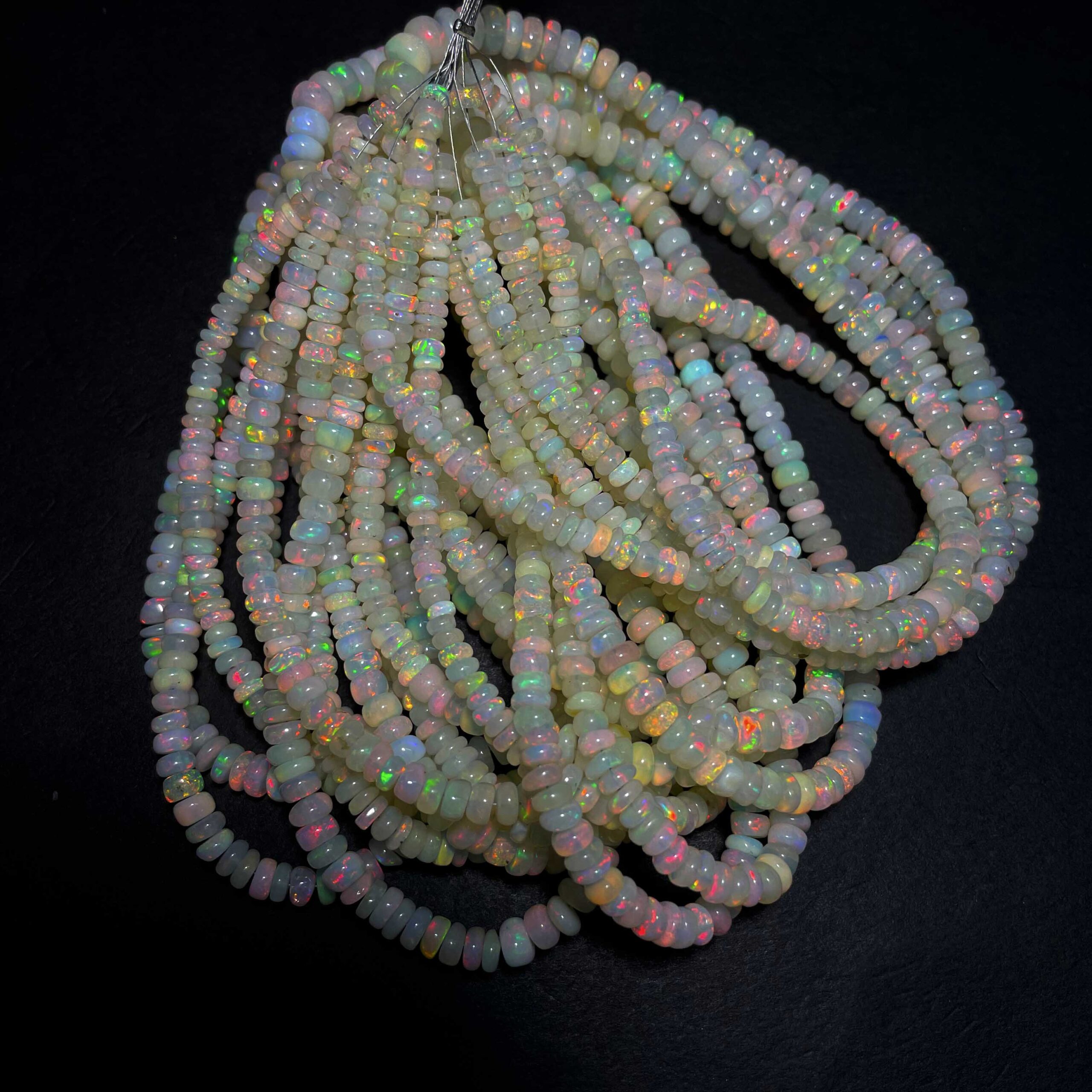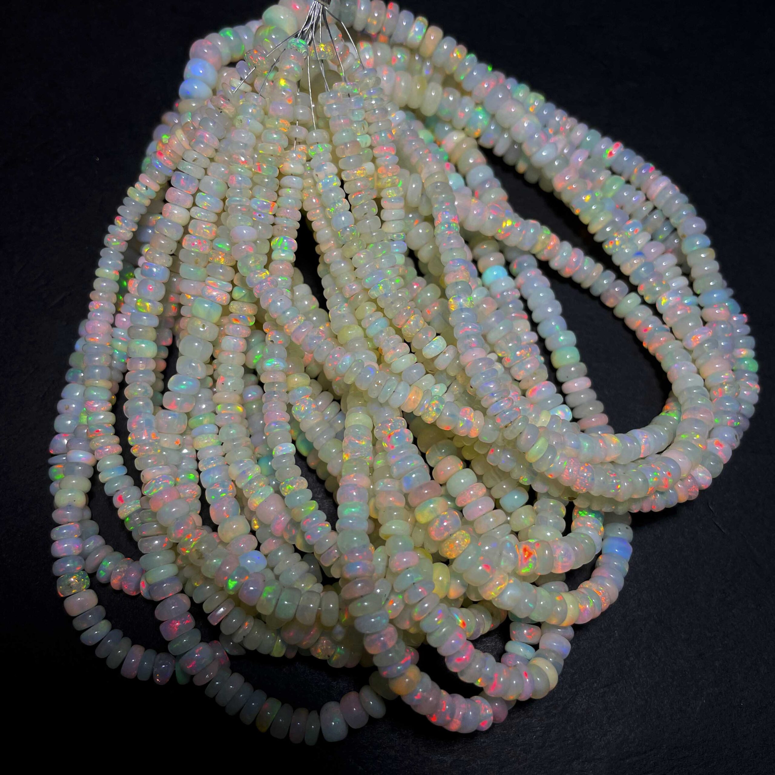 Natural Ethiopian Opal Multi Fire Gemstone Rondelle Beads 4-7 mm 54 CT 17 Inch $59.99 Original price was: $59.99.$44.99Current price is: $44.99.