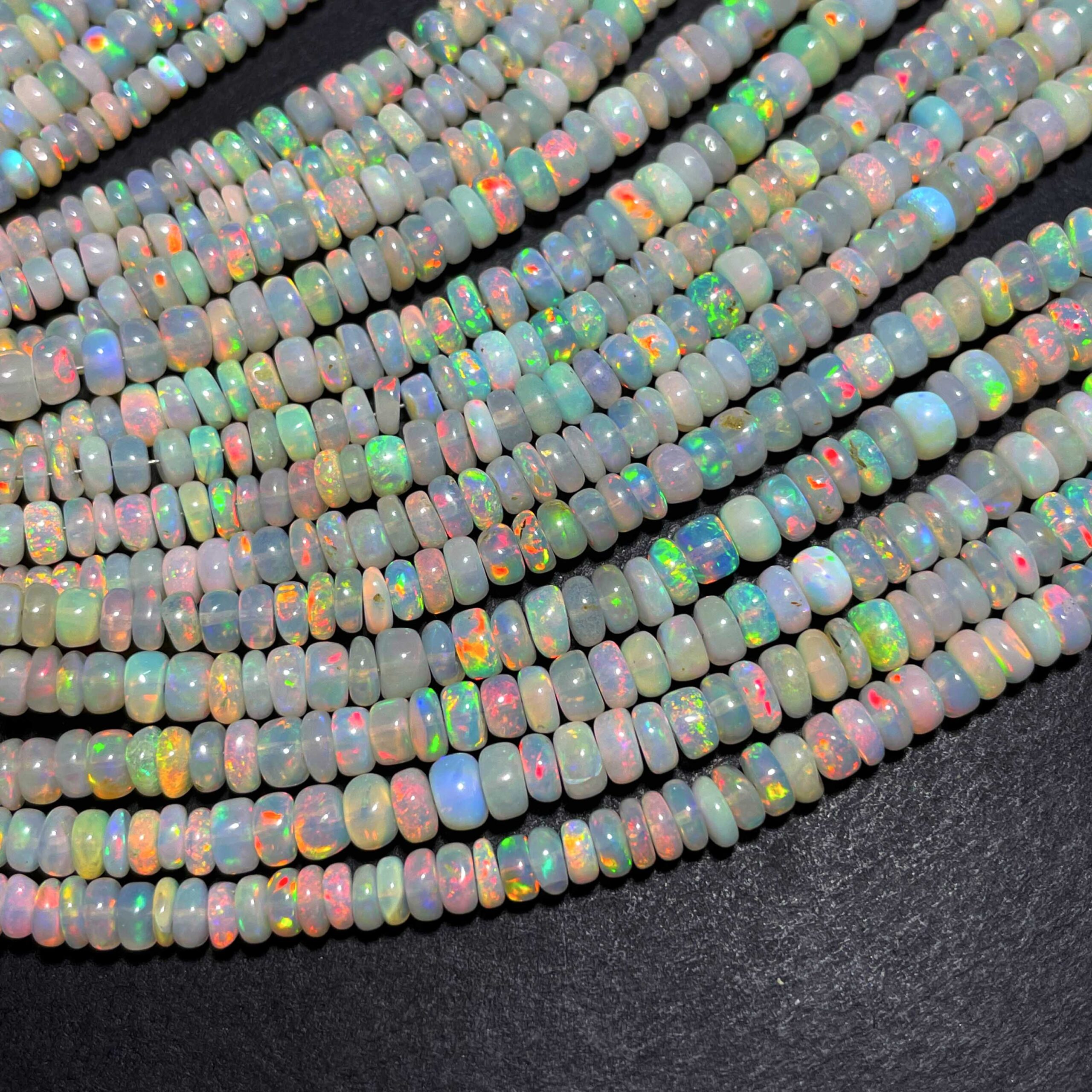 Natural Ethiopian Opal Multi Fire Gemstone Rondelle Beads 3.5-6 mm 54 CT 17 Inch