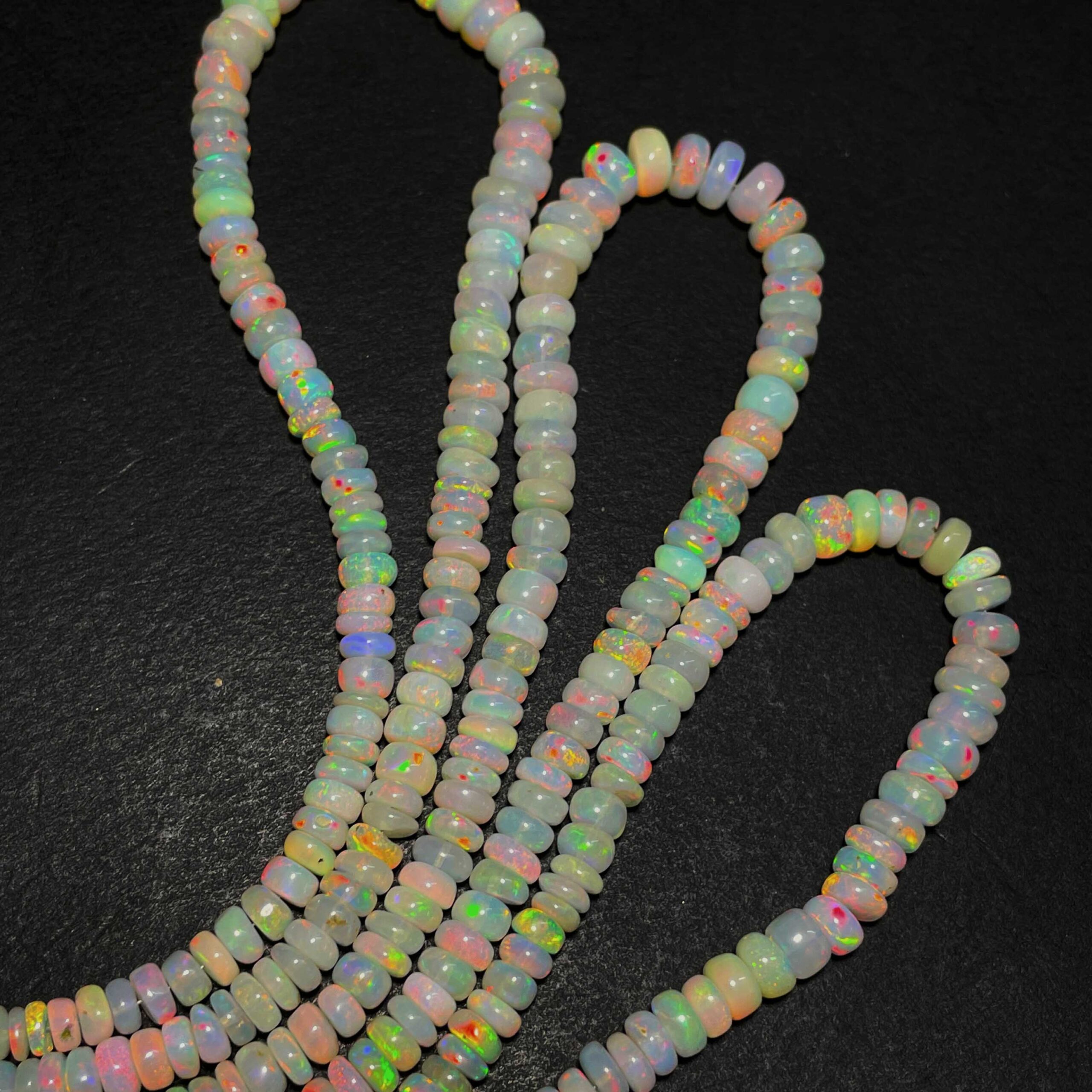 Home Beads Natural Ethiopian Opal Multi Fire Gemstone Rondelle Beads 4-7 mm 54 CT 17 Inch