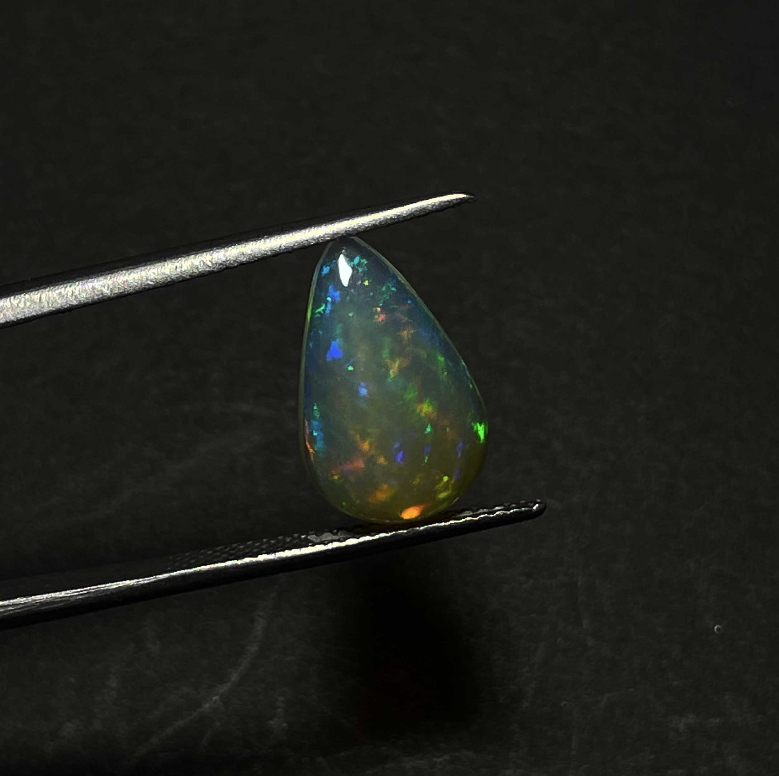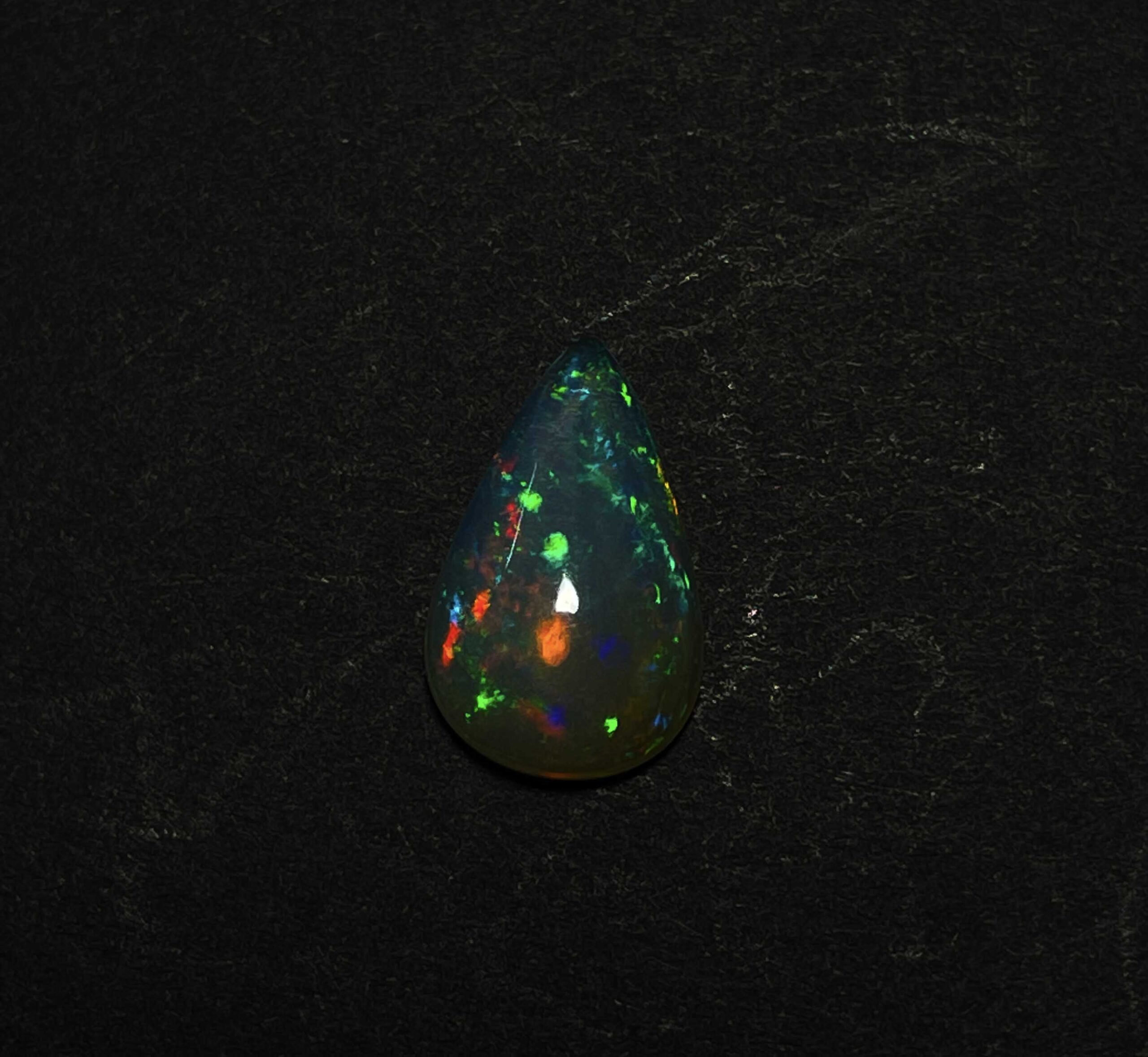 Home Opal Natural Ethiopian Opal Pear Gemstone Multi Fire Opal Cabochon 9.50×15 MM 3.20 CT