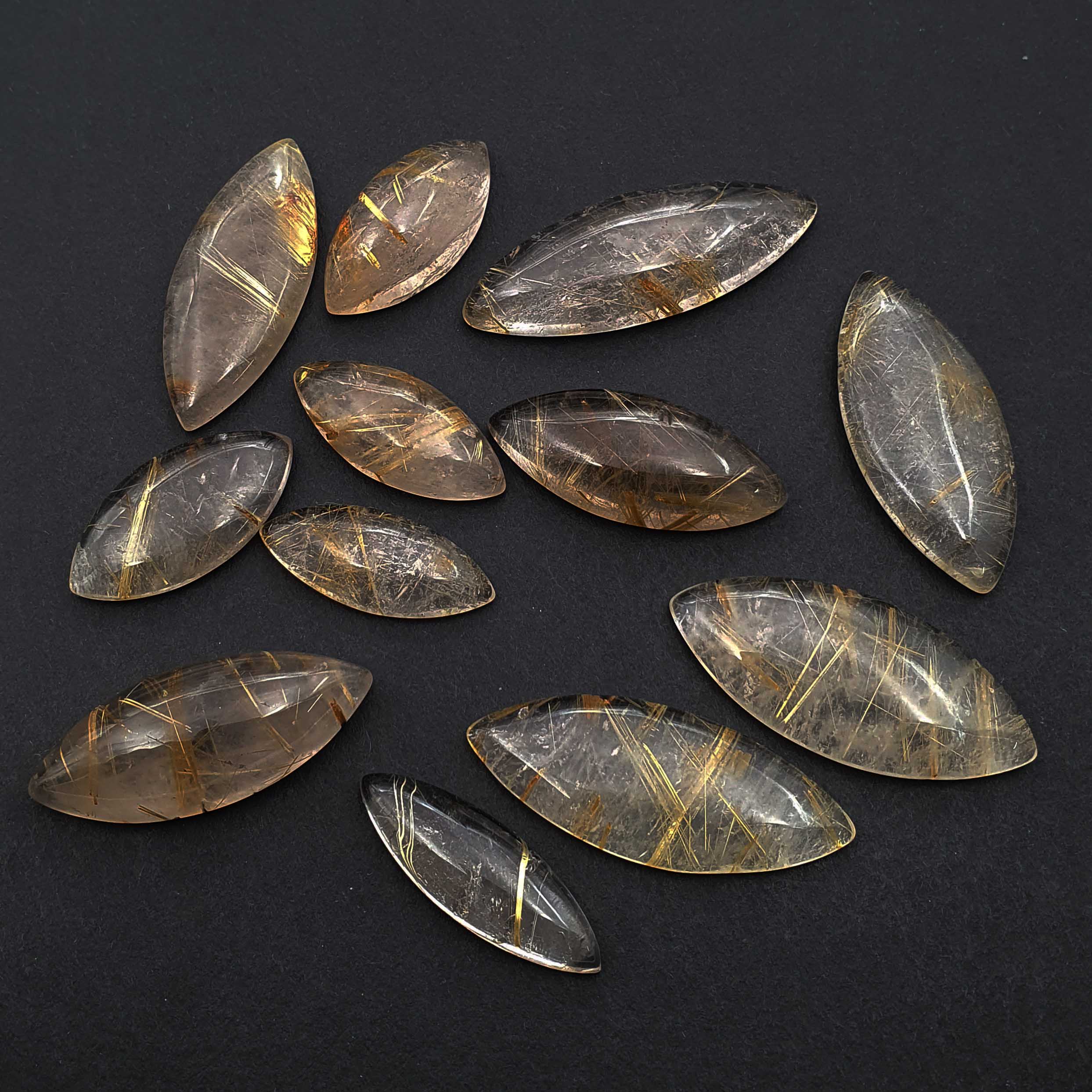 Home Rutile Quartz Natural Golden Rutile Quartz Marquise Cabochon 10*26-17*39 MM 130 CT 6 Pcs