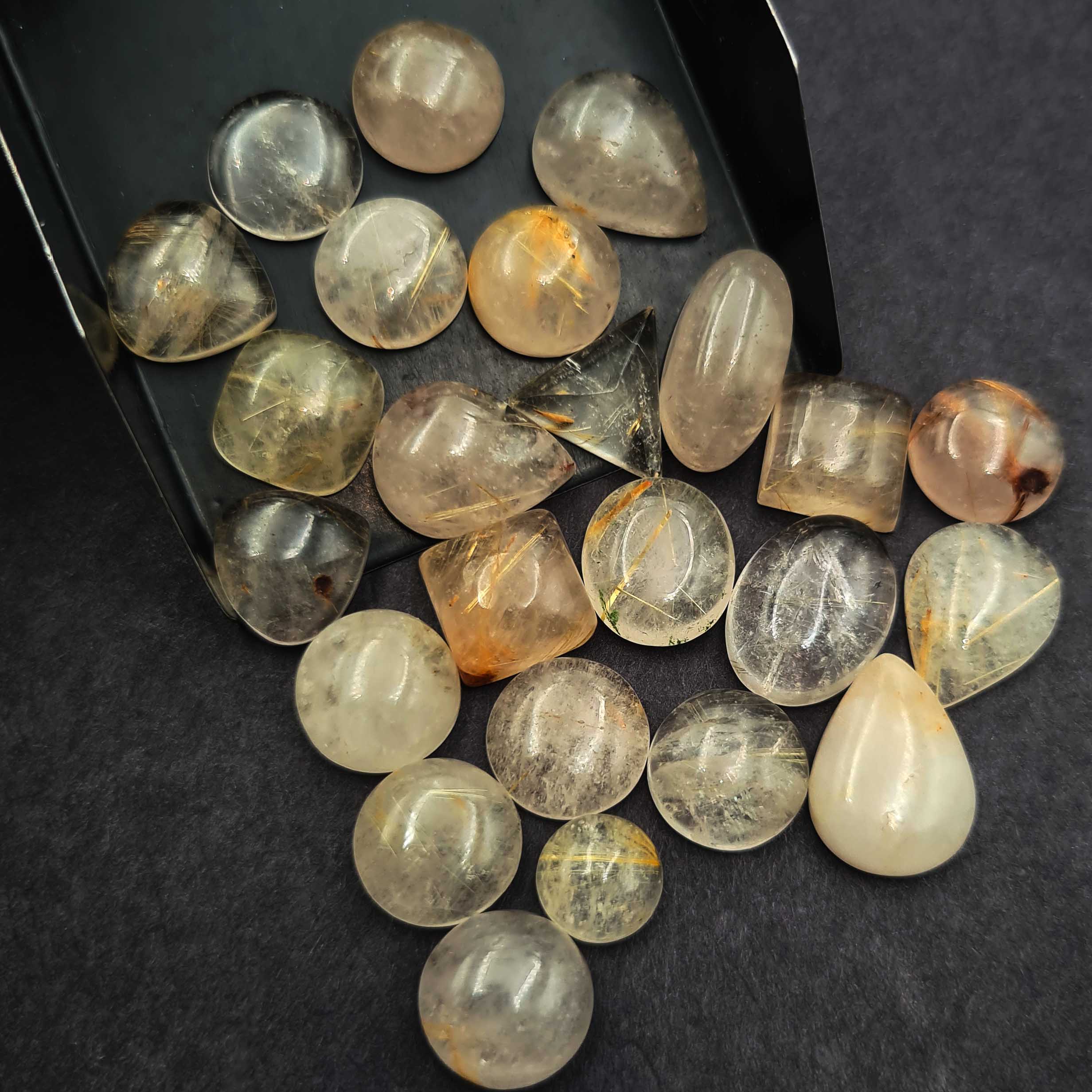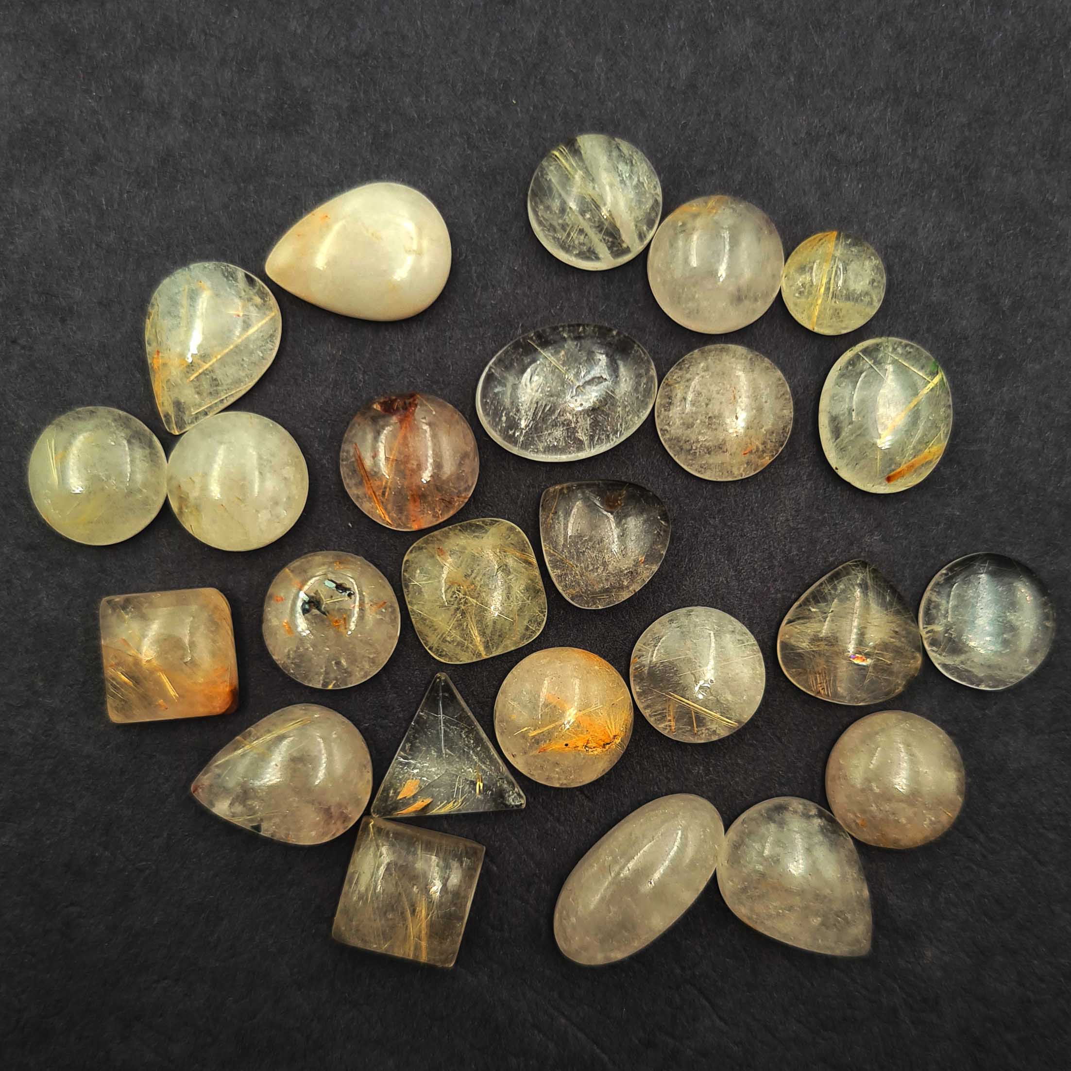 Home Rutile Quartz Natural Golden Rutile Quartz Mix Cabochon Gemstone Lot 9-12 MM 147 CT 24 Pcs
