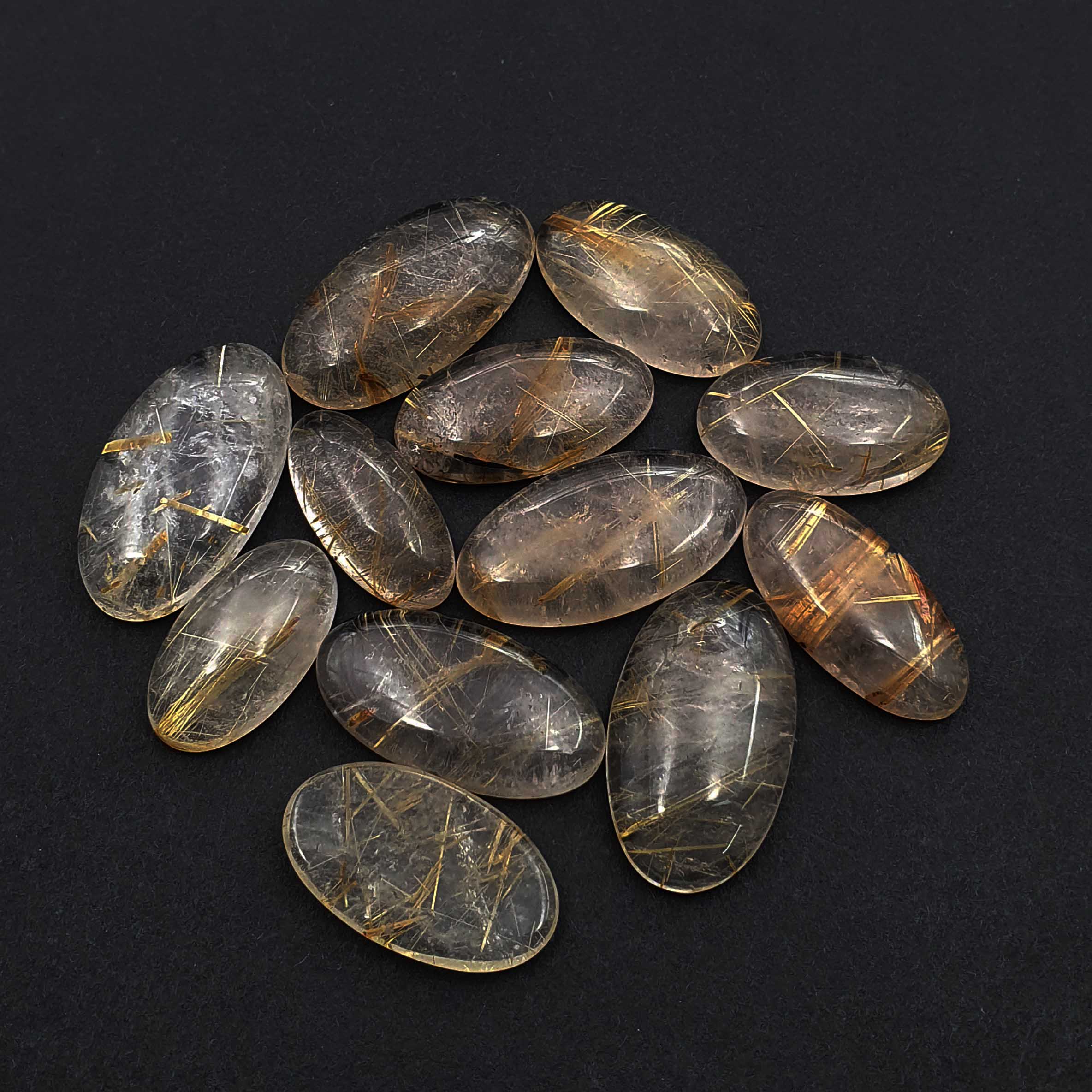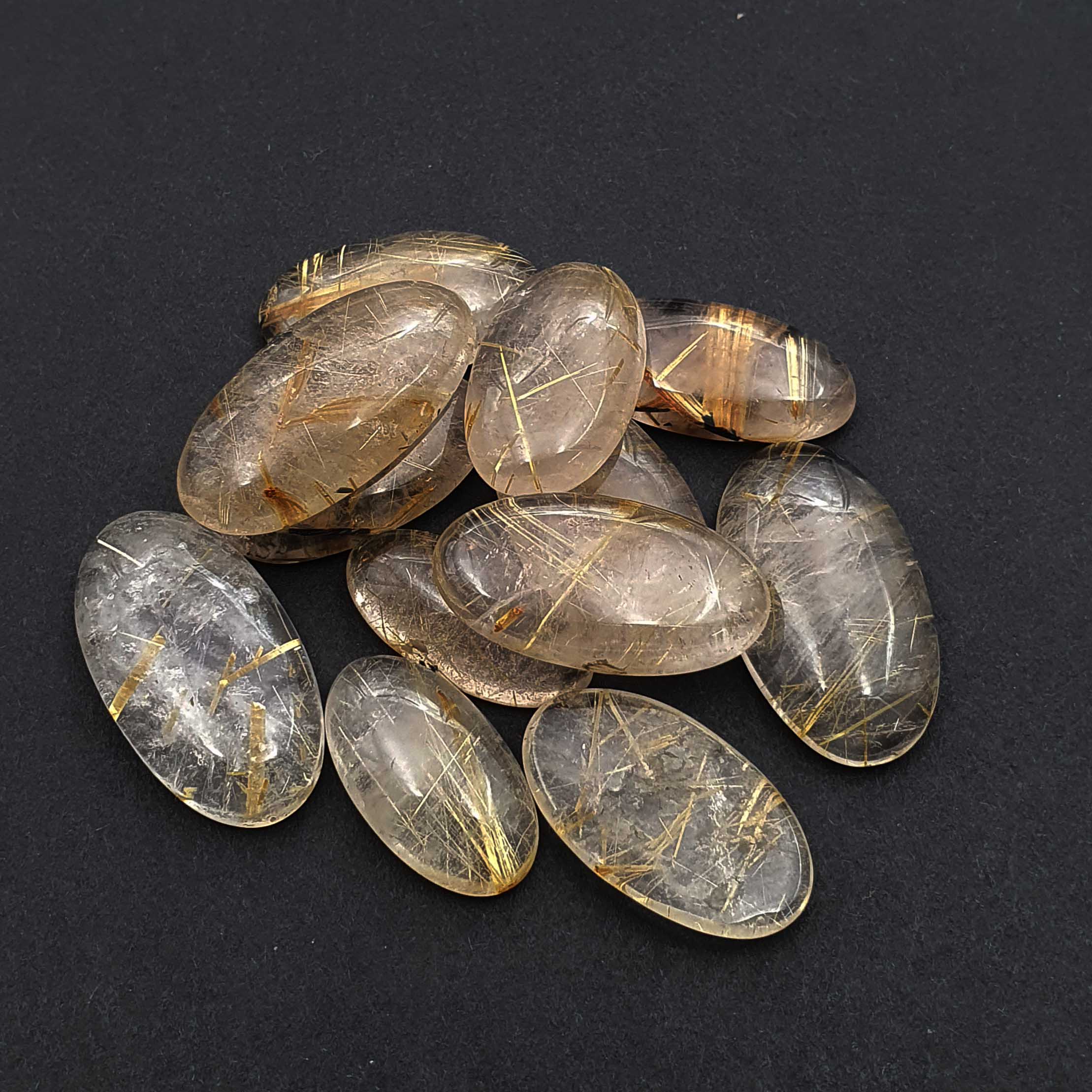 Home Rutile Quartz Natural Golden Rutile Quartz Oval Cabochon 12*21-15*28 MM 50 CT 3 Pcs