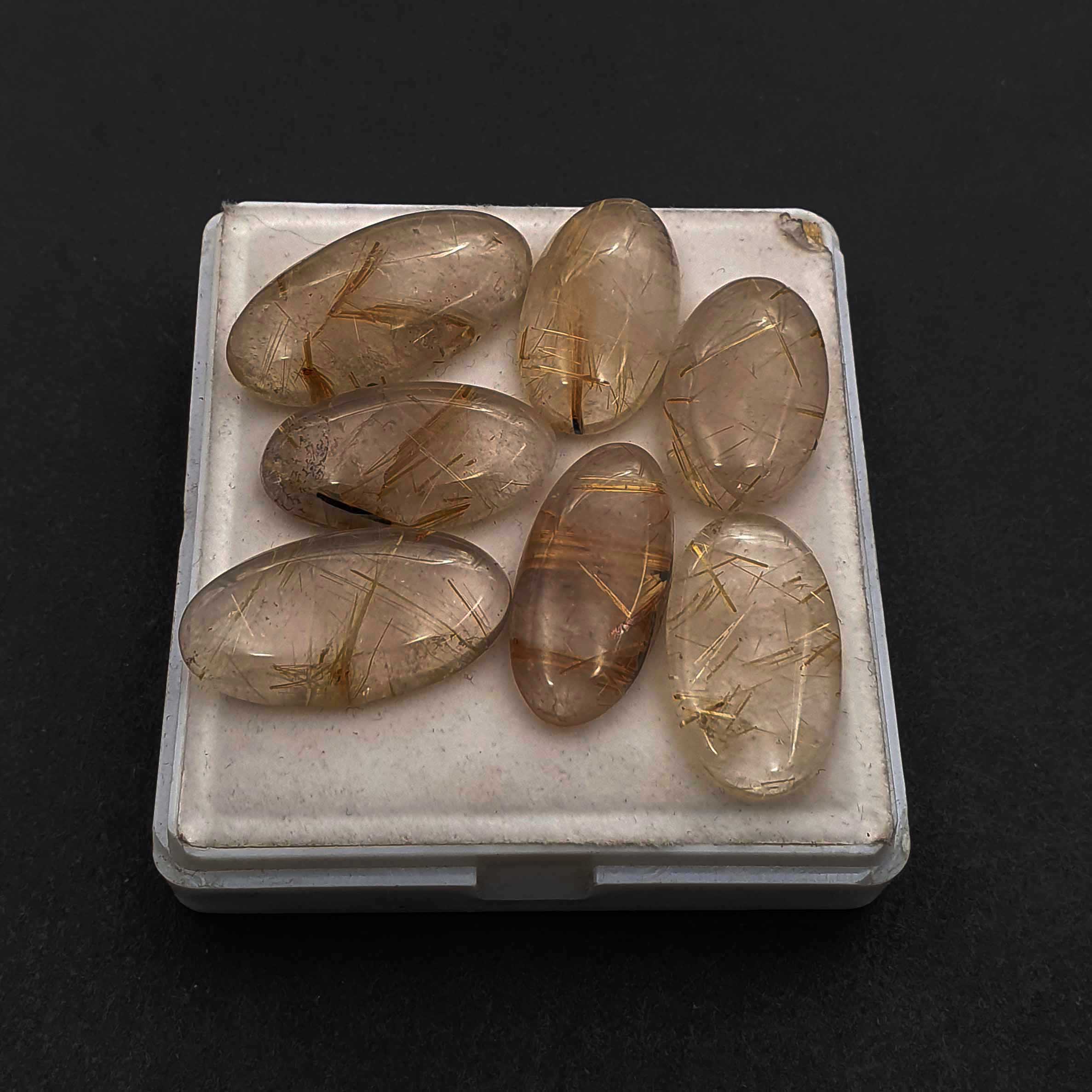 Natural Golden Rutile Quartz Oval Cabochon Loose Stone Lot 15*20 MM 114 CT 7 Pcs