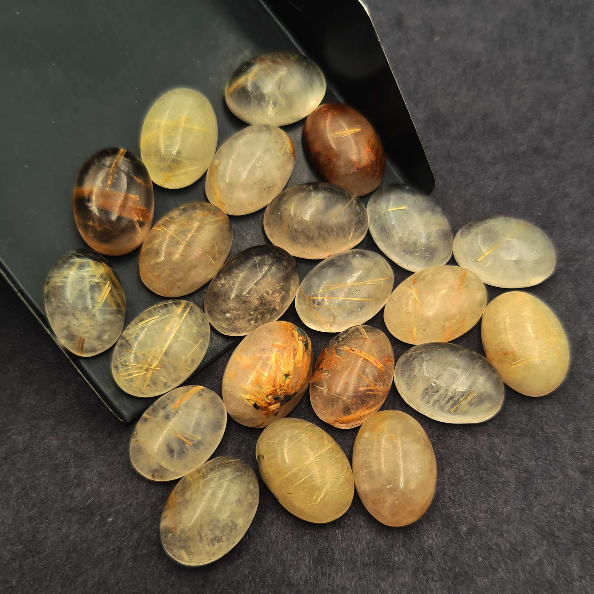 Home Rutile Quartz Natural Golden Rutile Quartz Oval Cabochon Gemstone Lot 10*14 MM 100 CT 17 Pcs