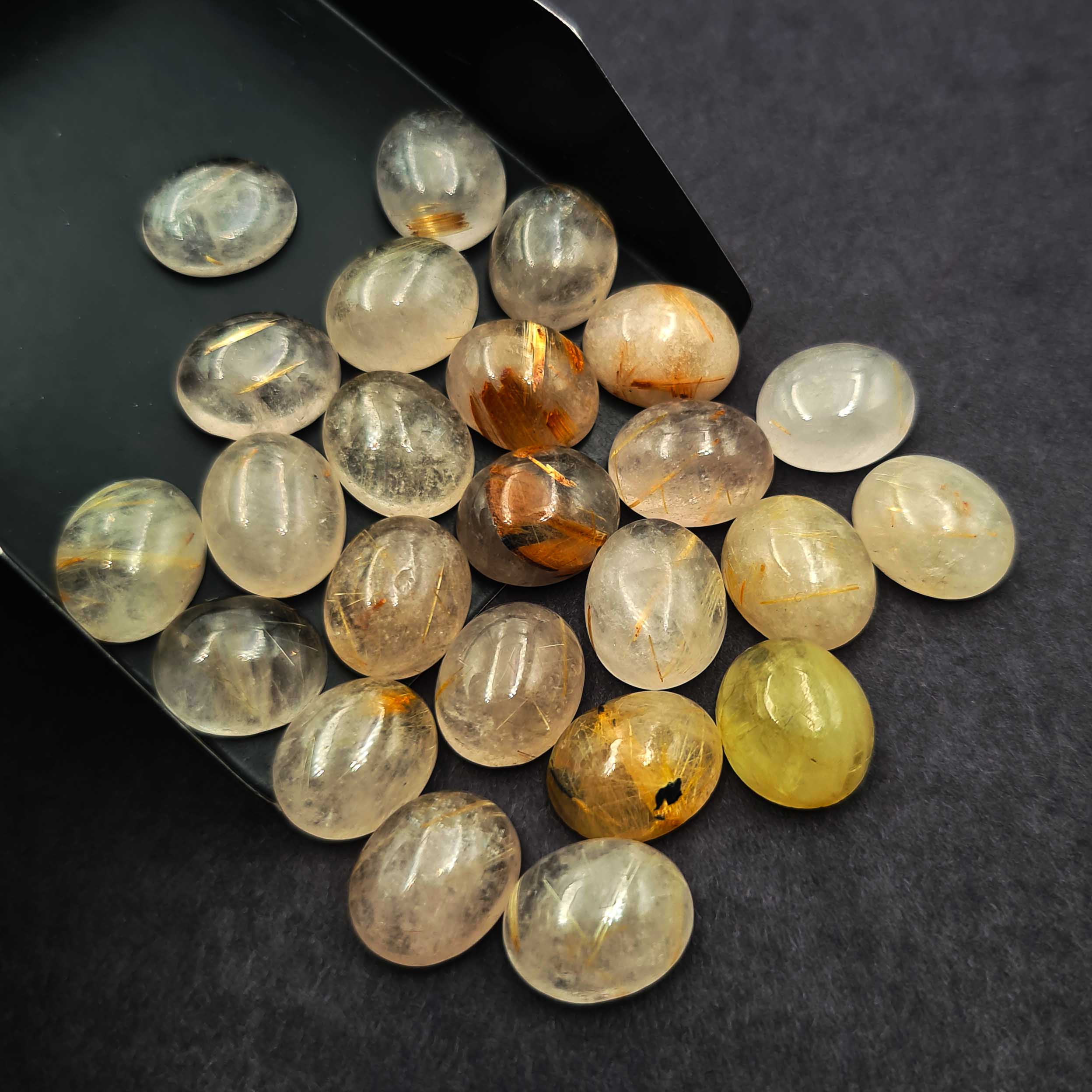 Natural Golden Rutile Quartz Oval Cabochon Loose Stone Lot 10*12 MM 106 CT 22Pcs