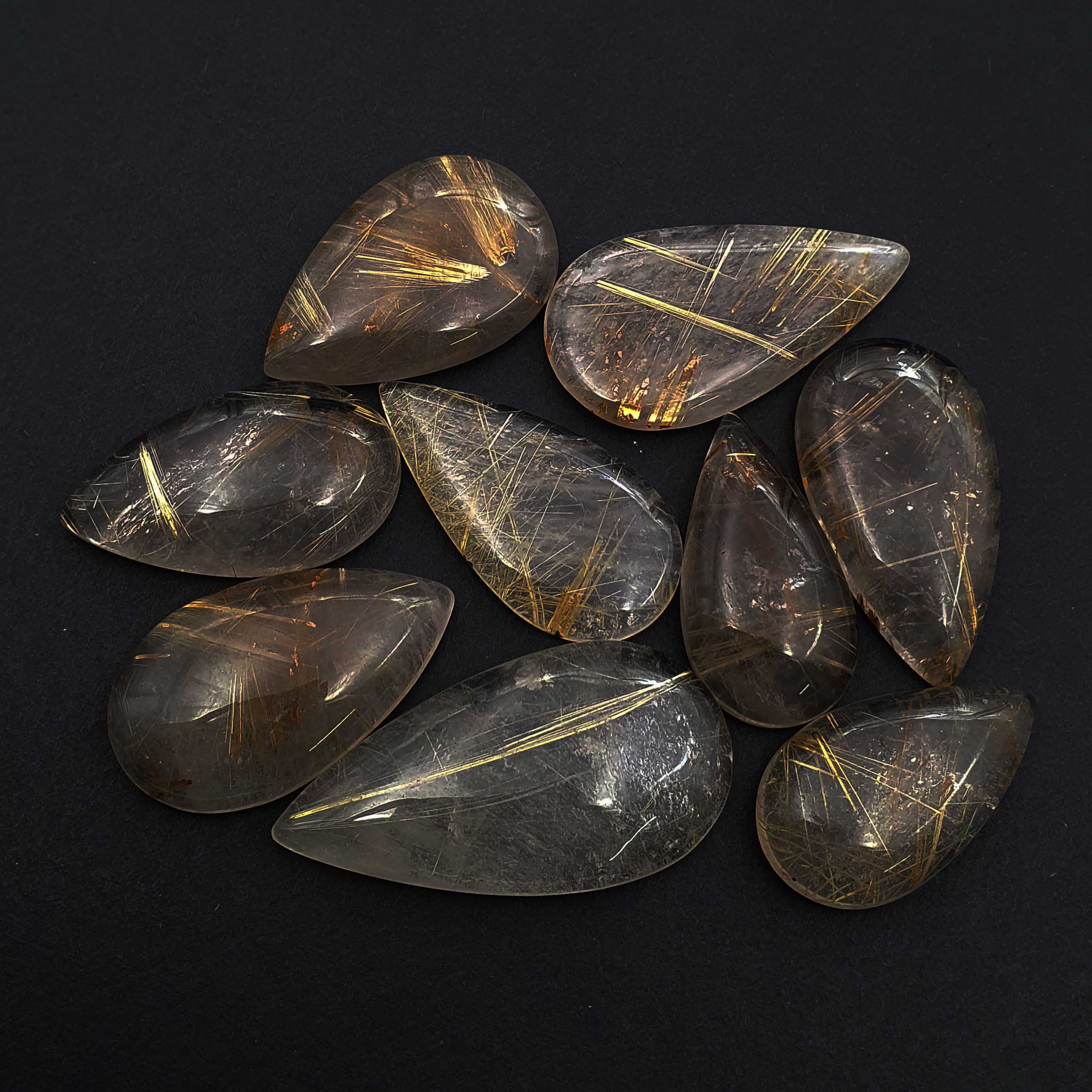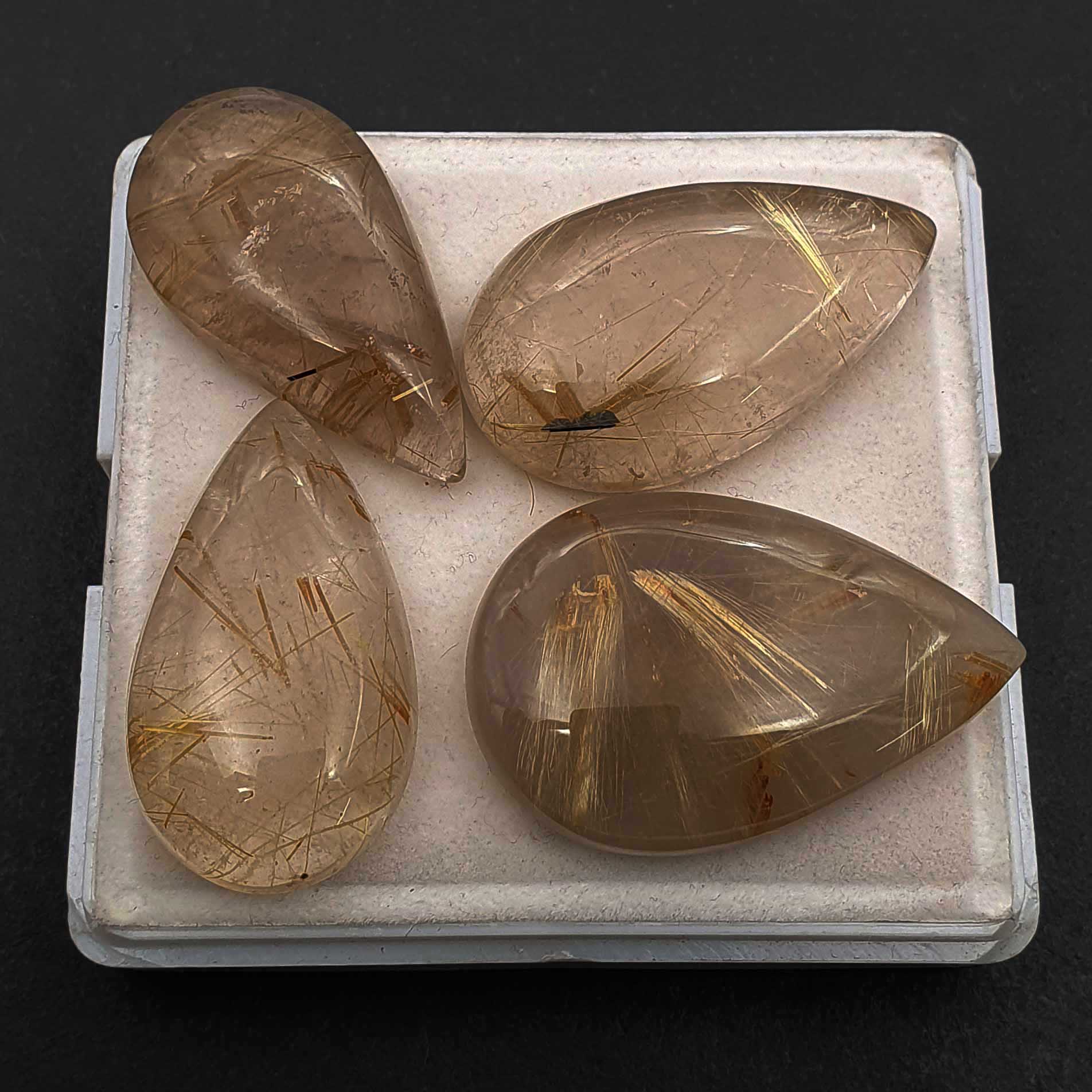 Home Rutile Quartz Natural Golden Rutile Quartz Pear Cabochon 18*33-23*46 MM 152 CT 4 Pcs
