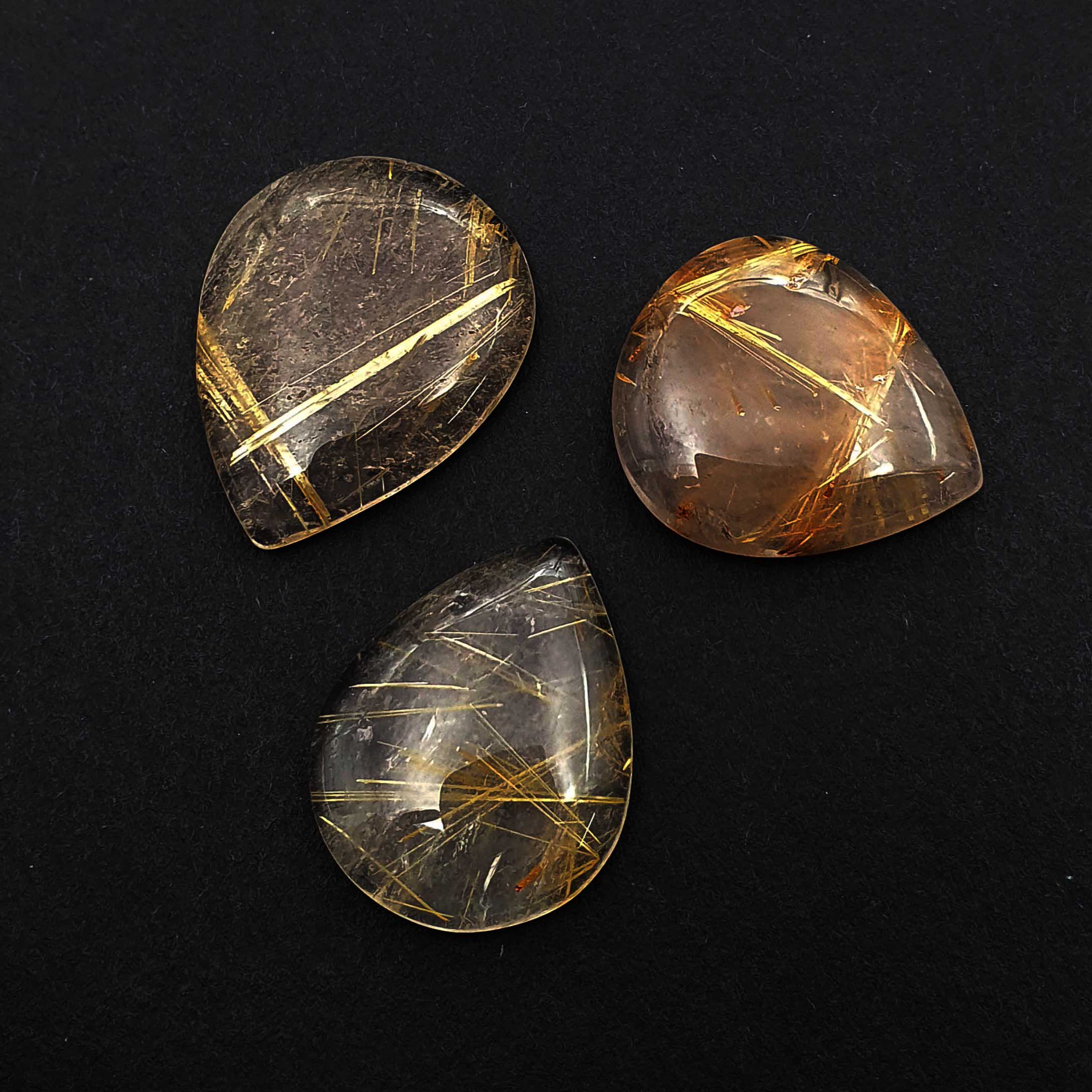 Home Rutile Quartz Natural Golden Rutile Quartz Pear Cabochon 21*26-23*29 MM 77 CT 3 Pcs