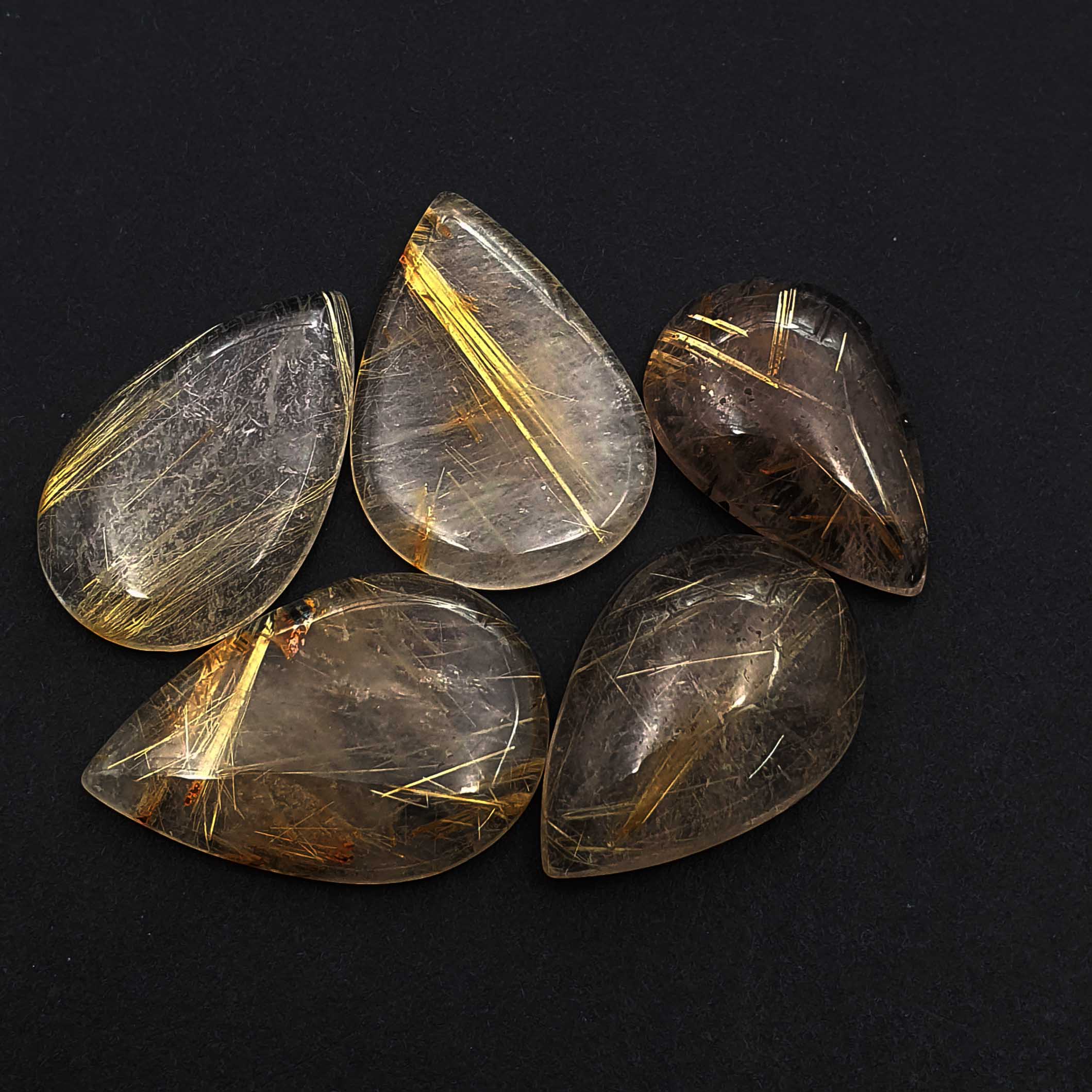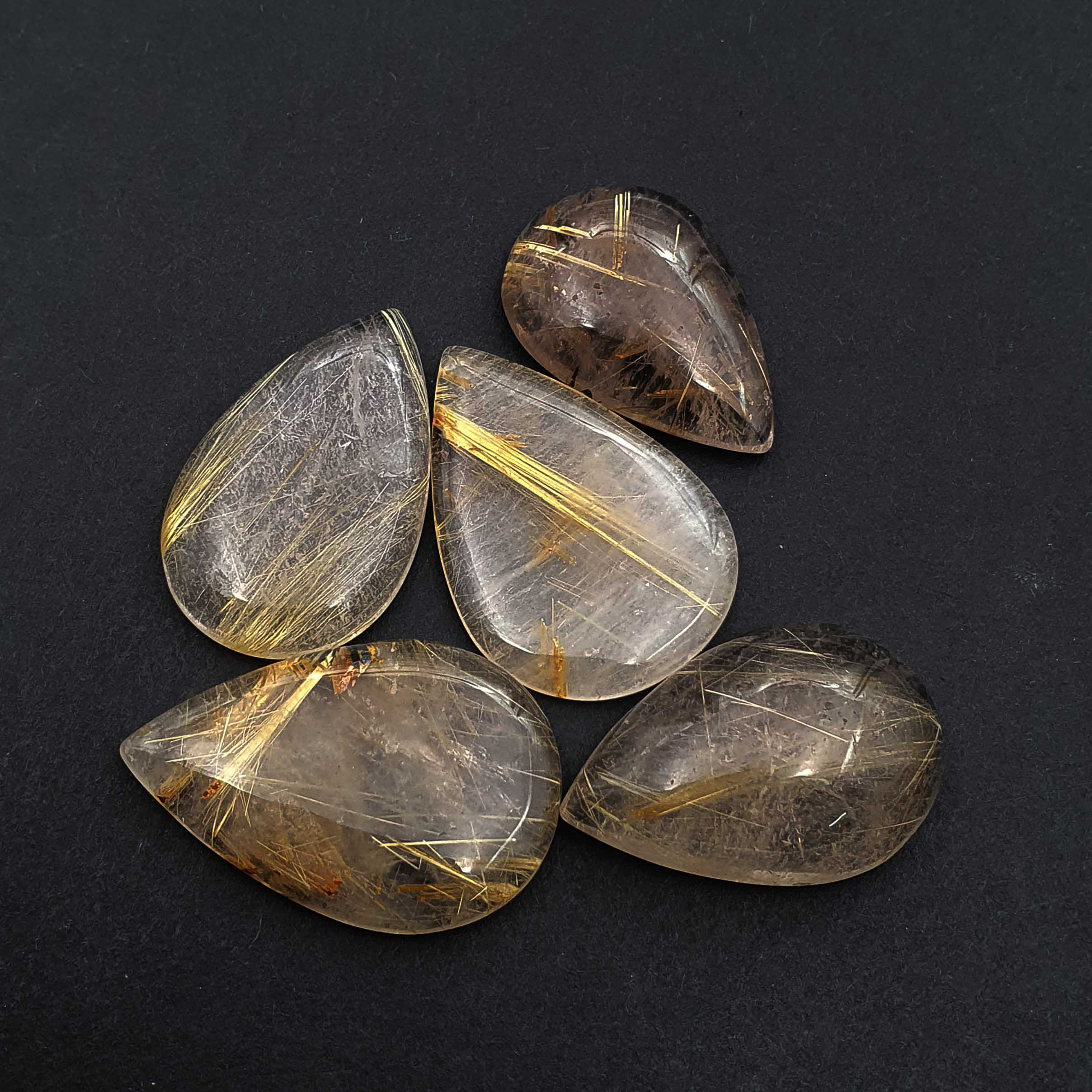 Natural Golden Rutile Quartz Pear Cabochon Loose Stone Lot 10*14 MM 103 CT 17Pcs