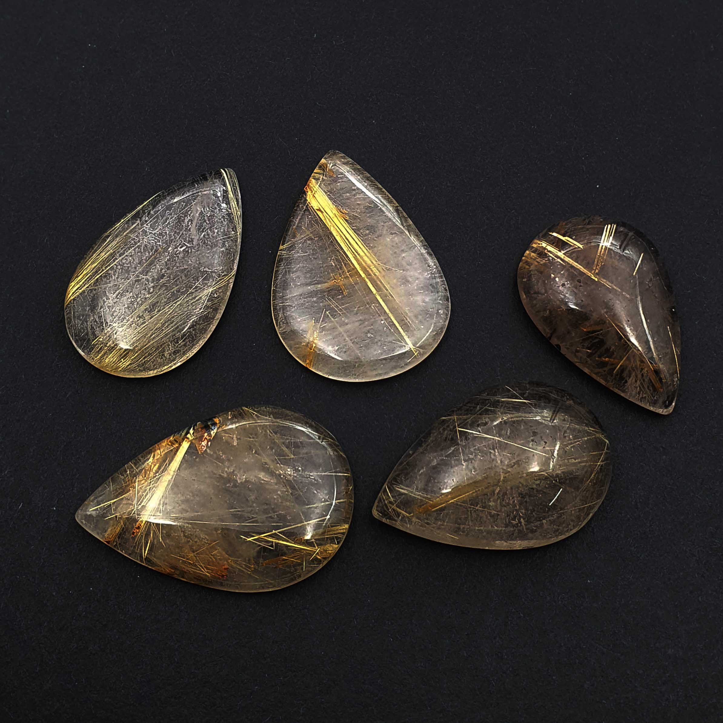 Home Rutile Quartz Natural Golden Rutile Quartz Pear Cabochon 21*32-24*37 MM 71 CT 2 Pcs