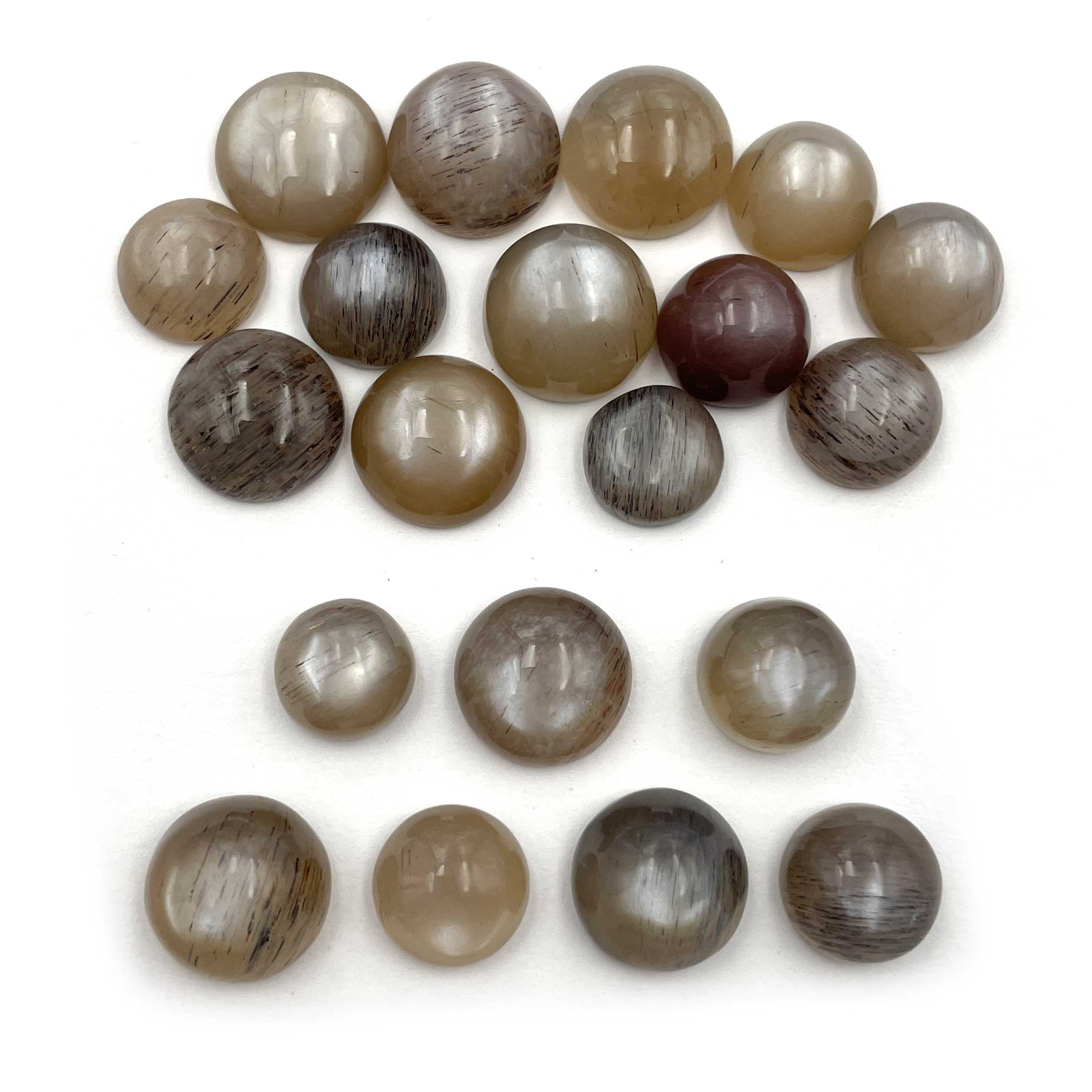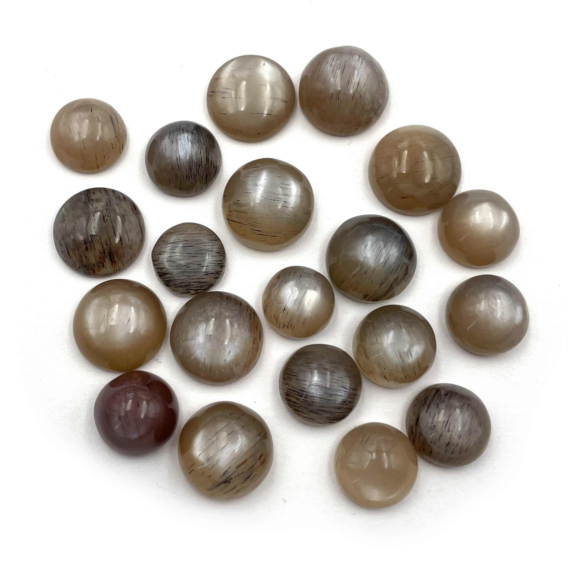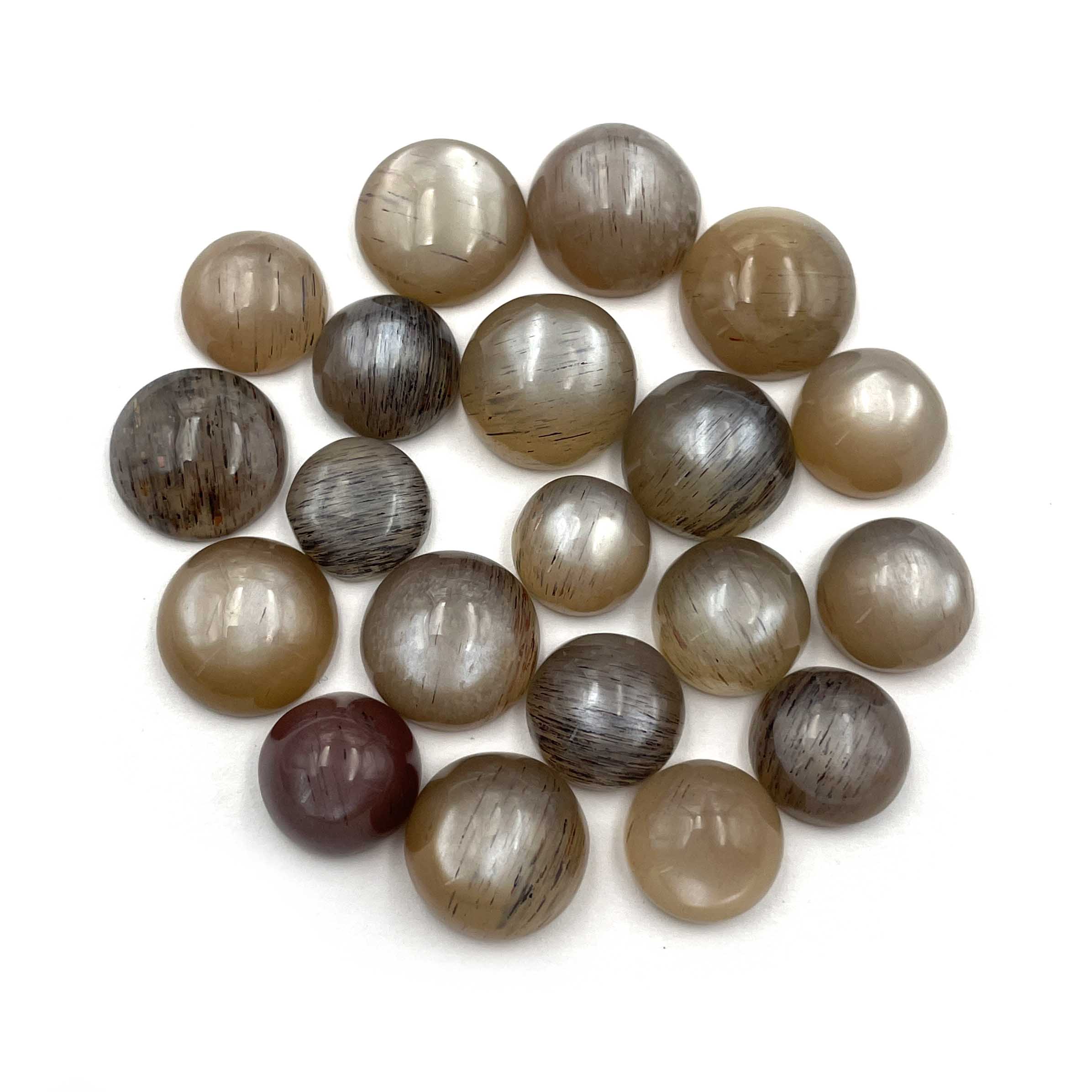 Natural Gray Moonstone Round Cabochon Loose Gemstone Lot 20 Pcs 11-14 MM 164 CT