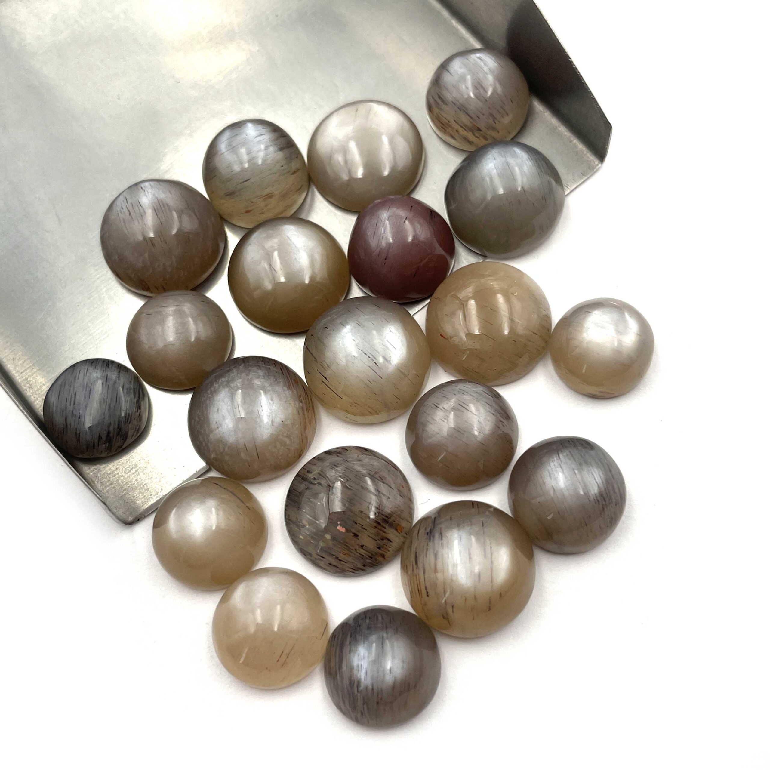Home Rainbow Moonstone Natural Gray Moonstone Round Cabochon Loose Gemstone Lot 20 Pcs 11-14 MM 164 CT