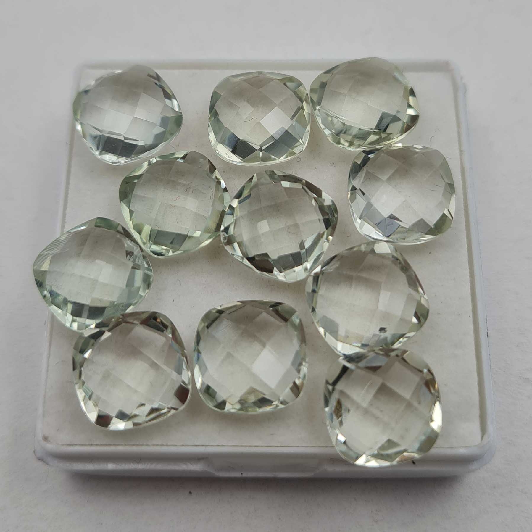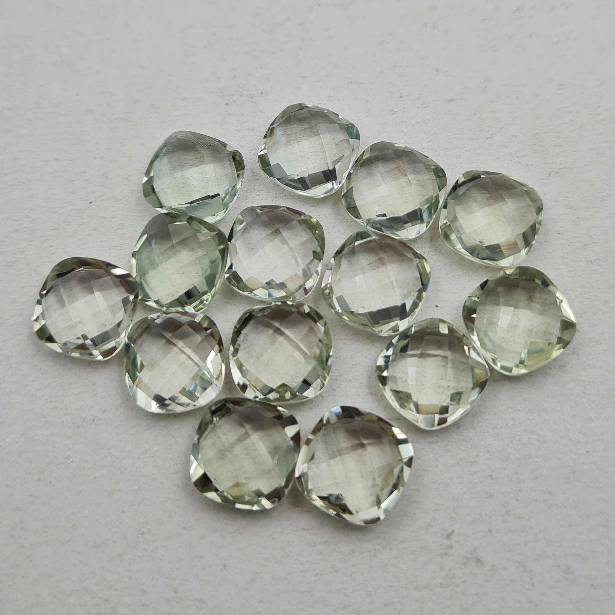 Home Amethyst Natural Green Amethyst Cushion Briolette Cut Loose Stone Lot 14 Pcs 10 MM 50 CT