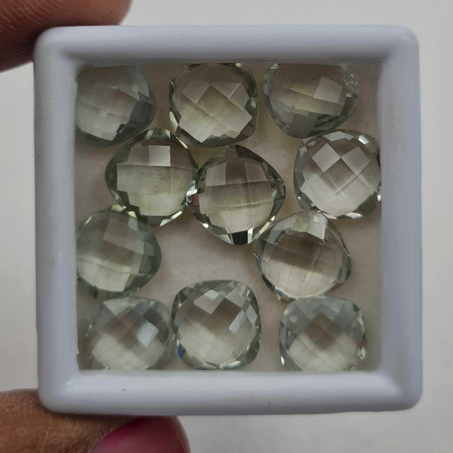 Natural Green Amethyst Cushion Briolette Cut Loose Stone Lot 14 Pcs 10 MM 50 CT