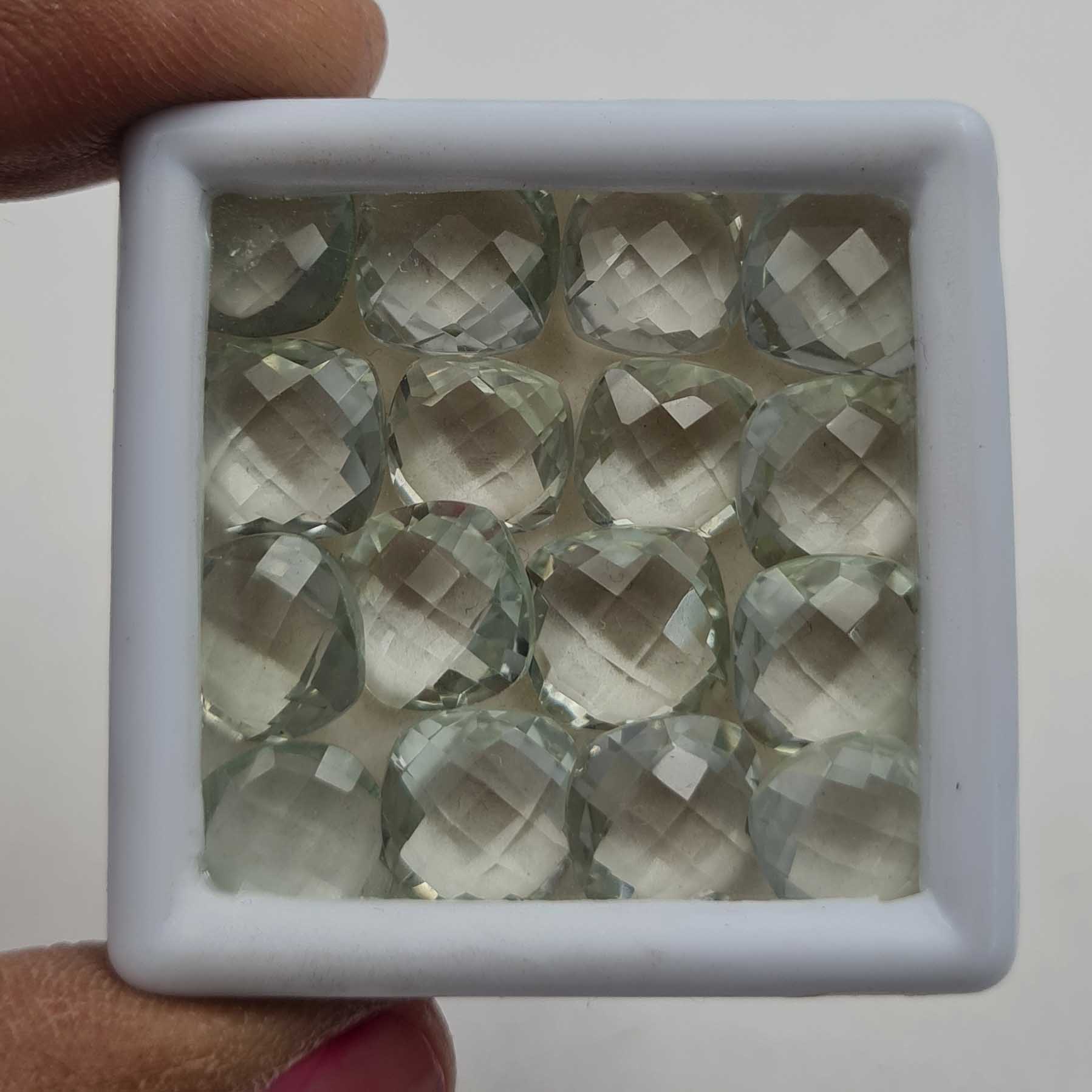 Home Amethyst Natural Green Amethyst Cushion Briolette Cut Loose Stone Lot 16 Pcs 9-10 MM 52CT