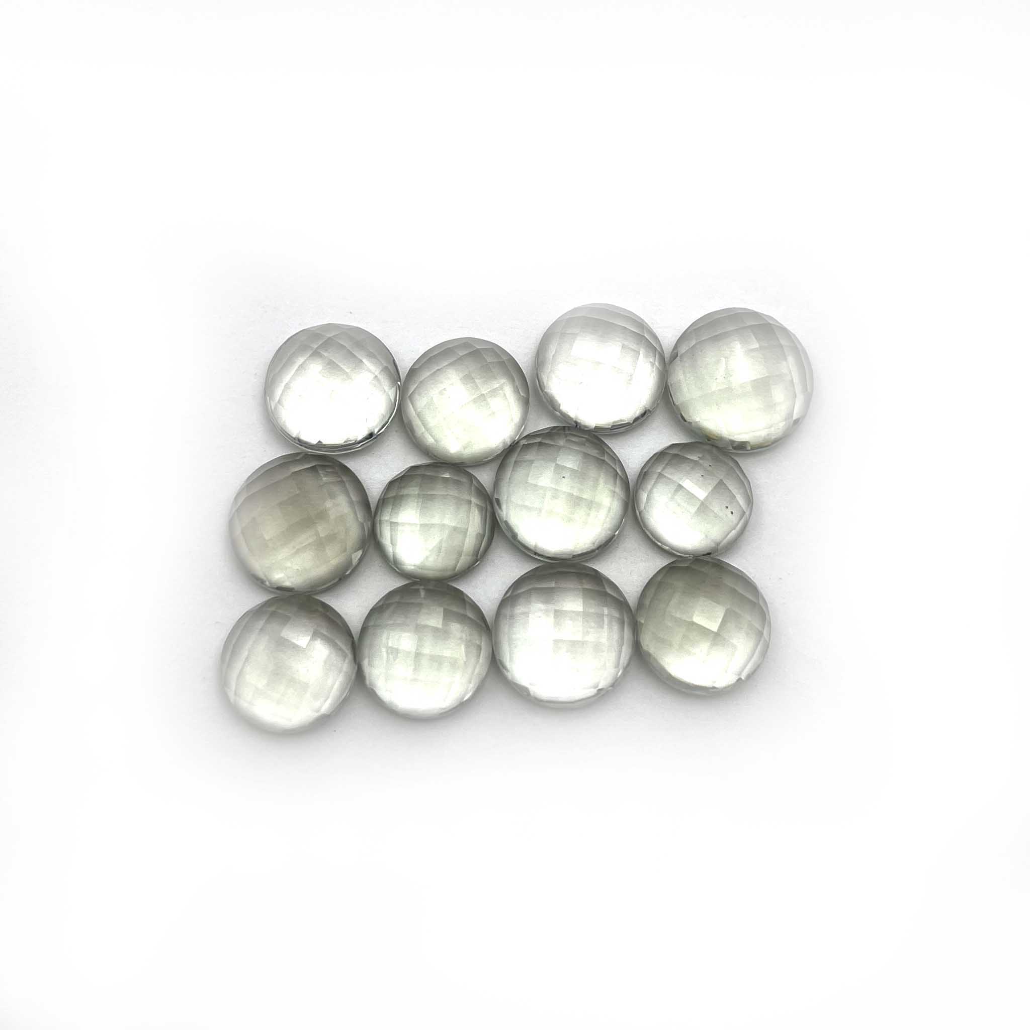 Natural Green Amethyst Round Checker Cut Loose Stone Lot 12 Pcs 10-13 MM 60 CT
