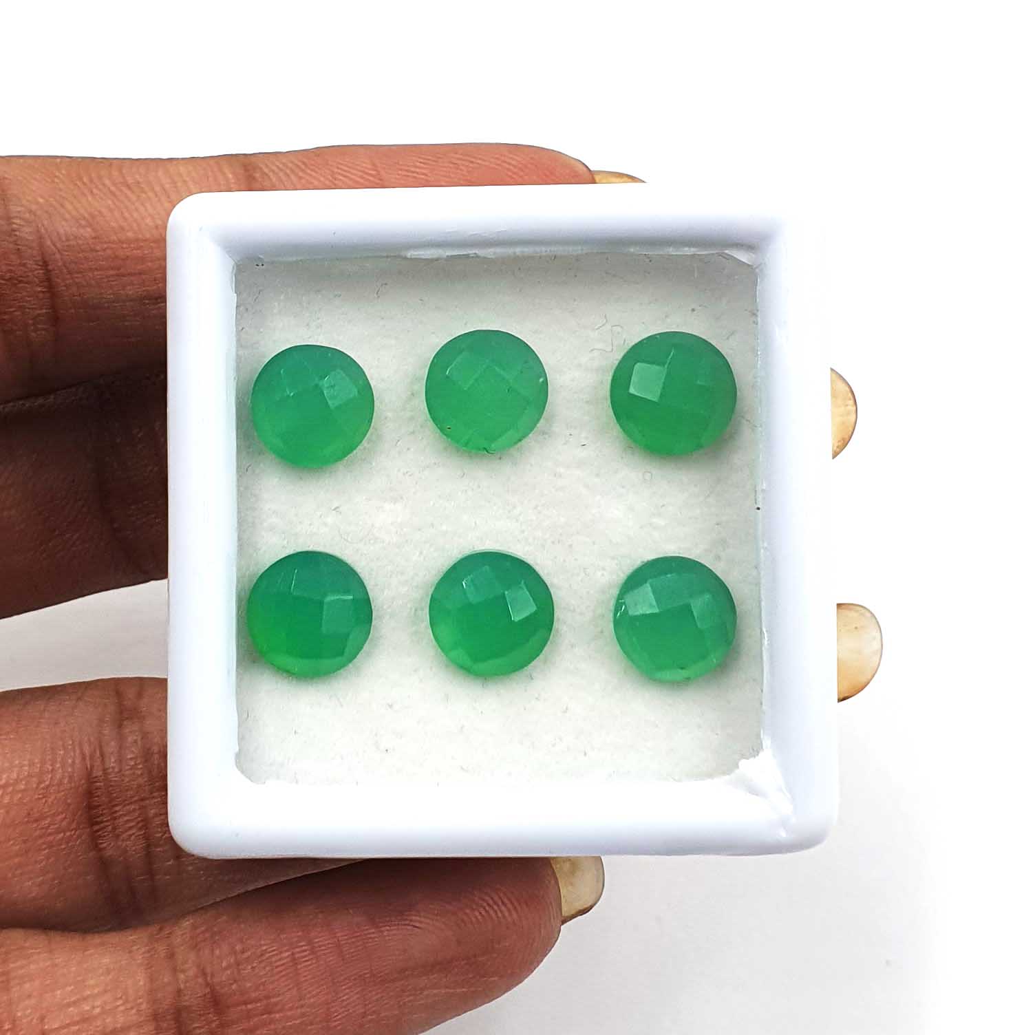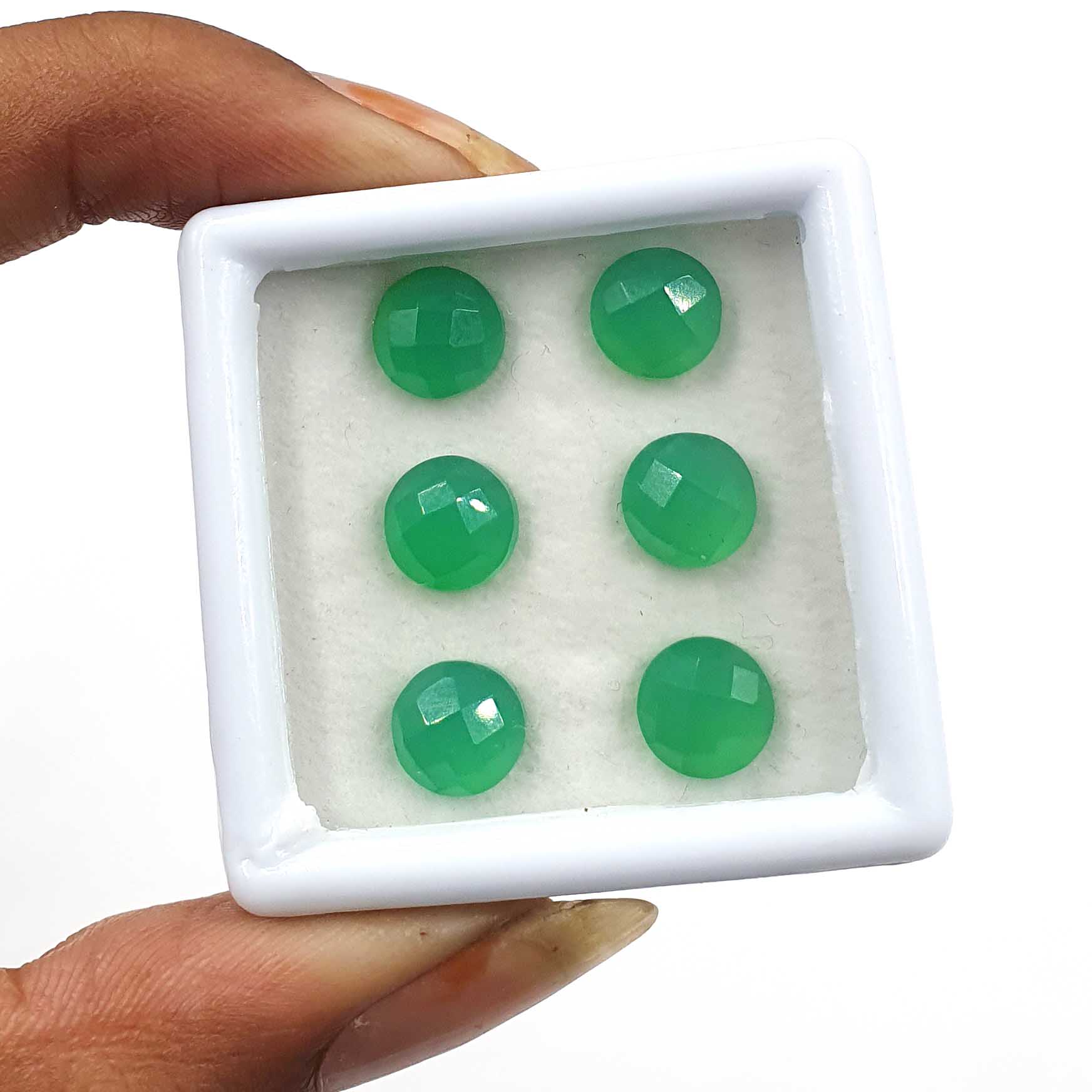 Home Chalcedony Natural Green Chalcedony Round Checker Cut Gemstone Lot 7 Pcs 8 MM 15.65 CT