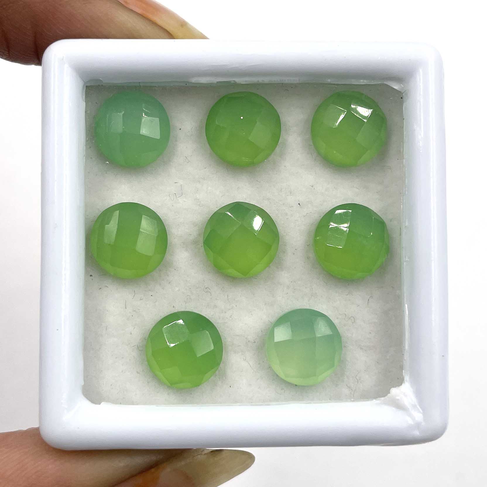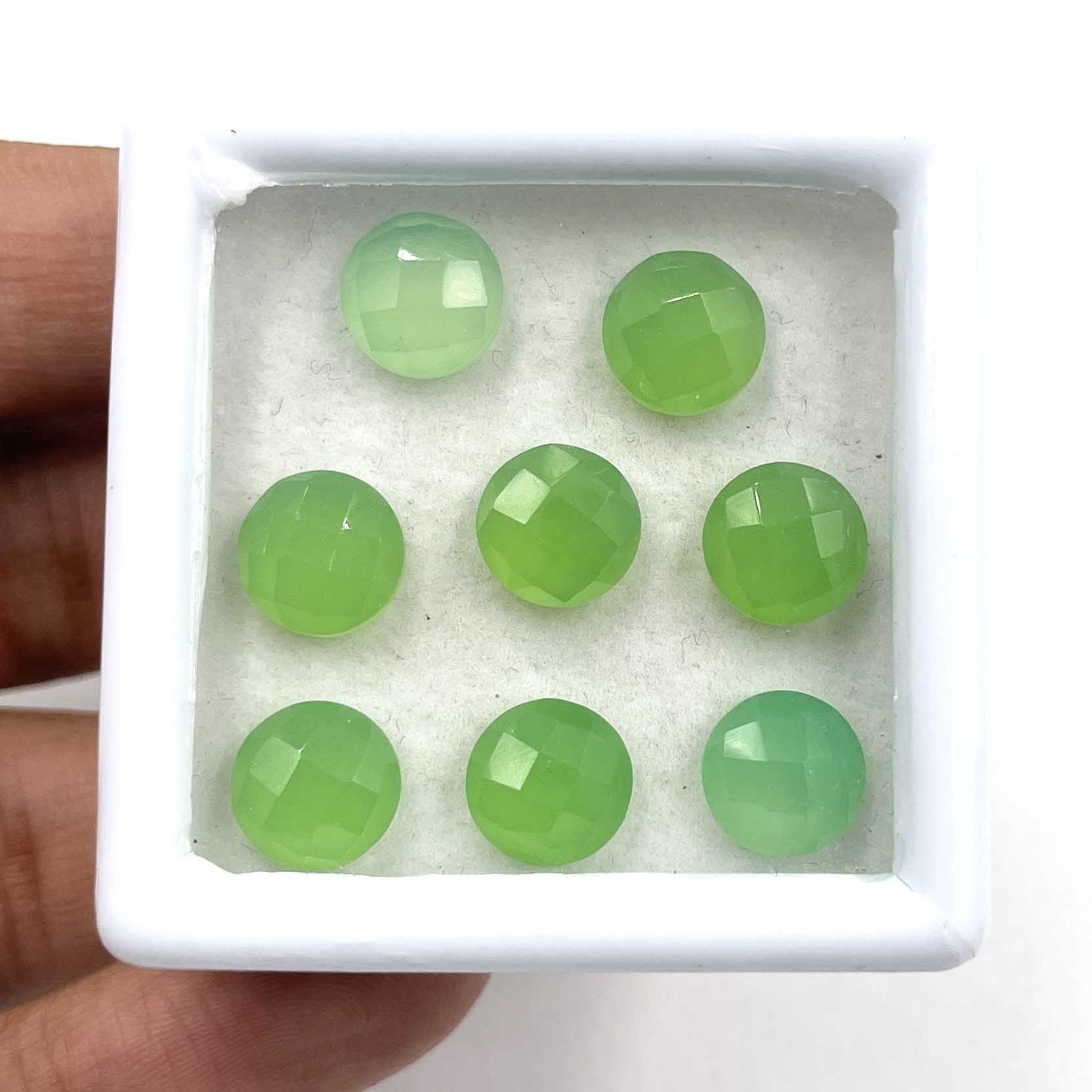 Home Chalcedony Natural Green Chalcedony Round Checker Cut Gemstone Lot 8 Pcs 8 MM 17.80 CT