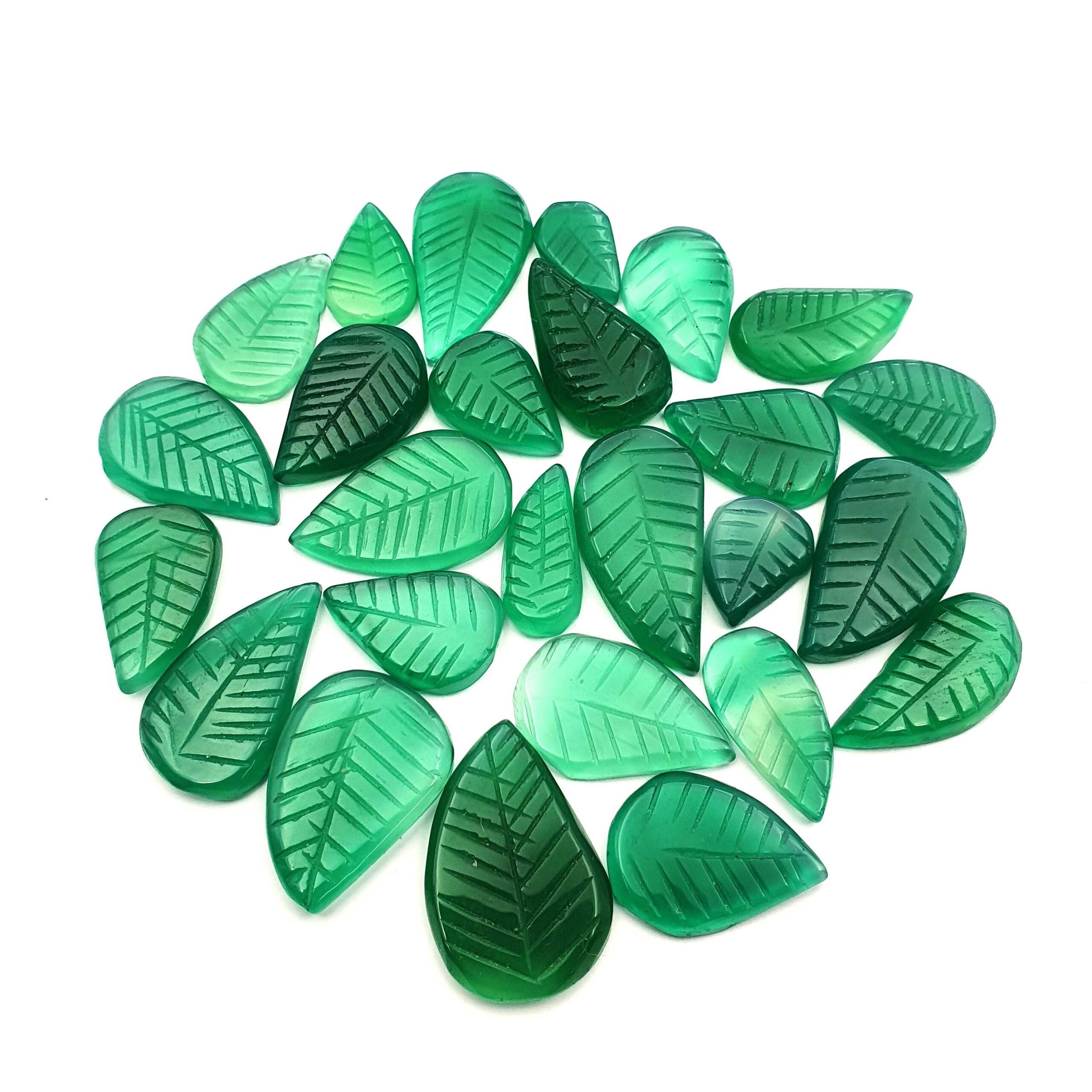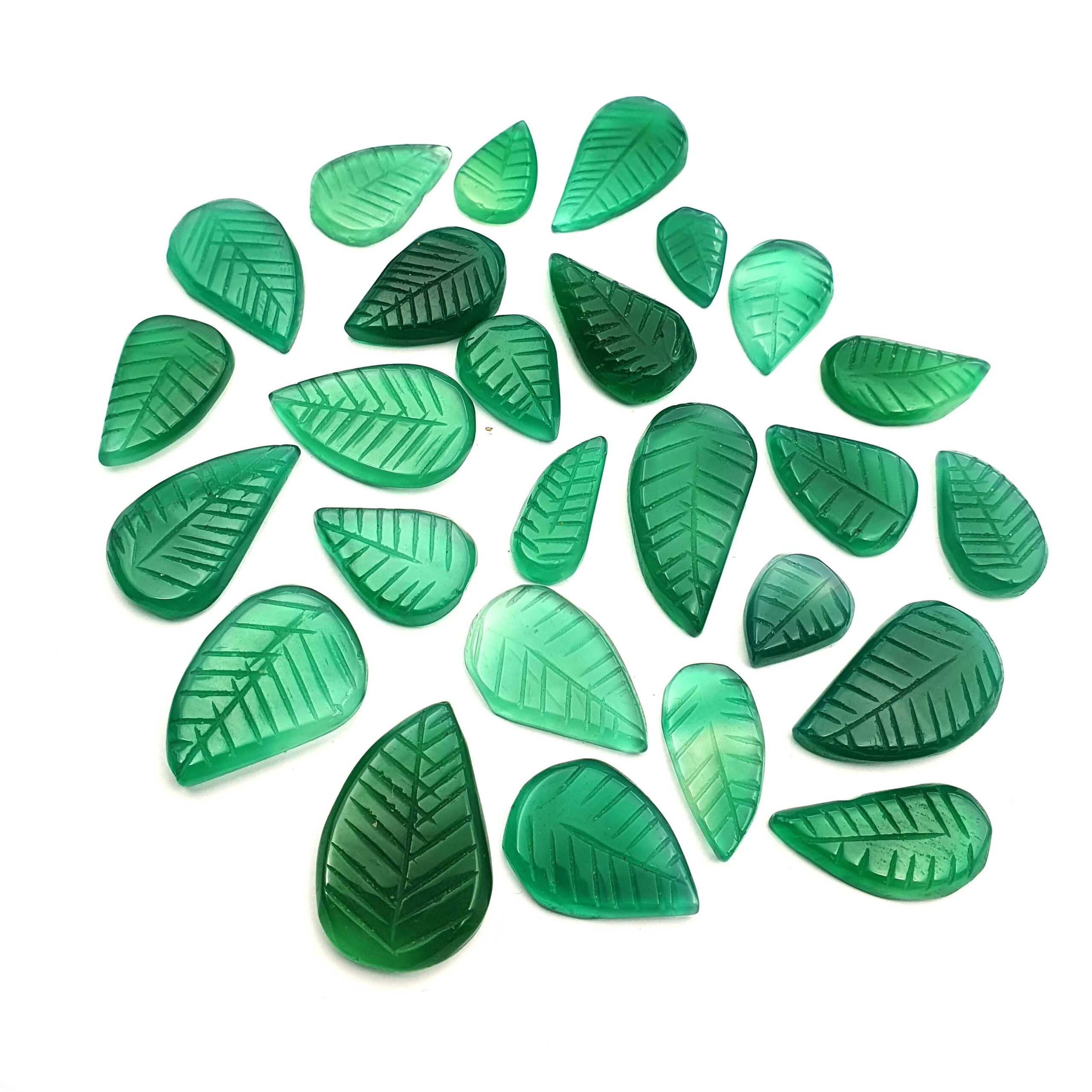 Home Onyx Natural Green Onyx Mix Size Leaf Carving Loose Gemstone 2 Pcs 8*16-17*25 mm