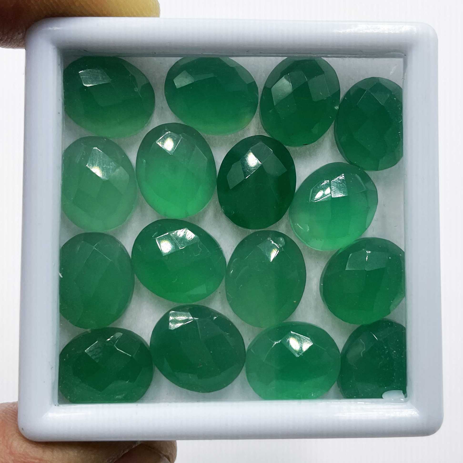 Natural Green Onyx Oval One Side Checker Cut Stone Lot 9 Pcs 12*16 MM 77 CT