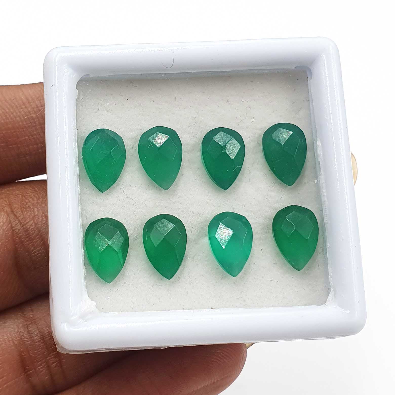 Natural Green Onyx Pear Checker Cut Loose Gemstone Lot 8 Pcs 6*9 MM 10.80 CT