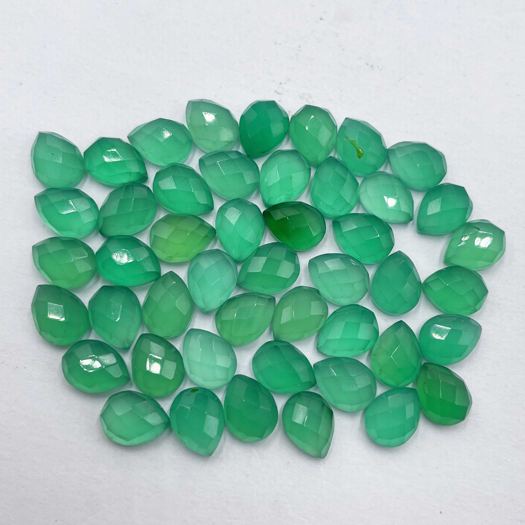 Home Onyx Natural Green Onyx Pear One Side Checker Cut Loose Stone Lot 80 Pcs 6*8 MM 100CT