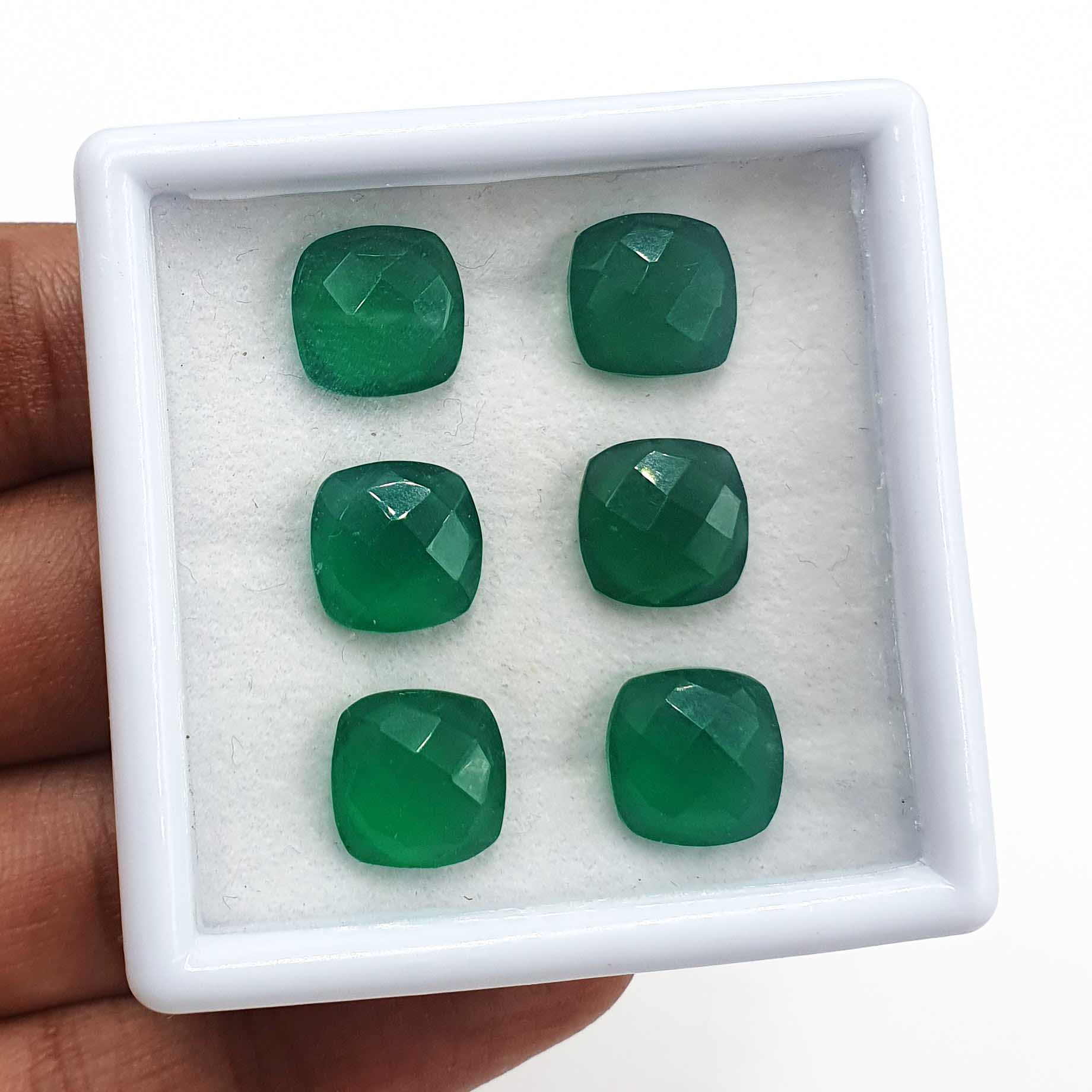 Home Onyx Natural Green Onyx Square Cushion Briolette Cut Gemstone Lot 7 Pcs 10 MM 27 CT