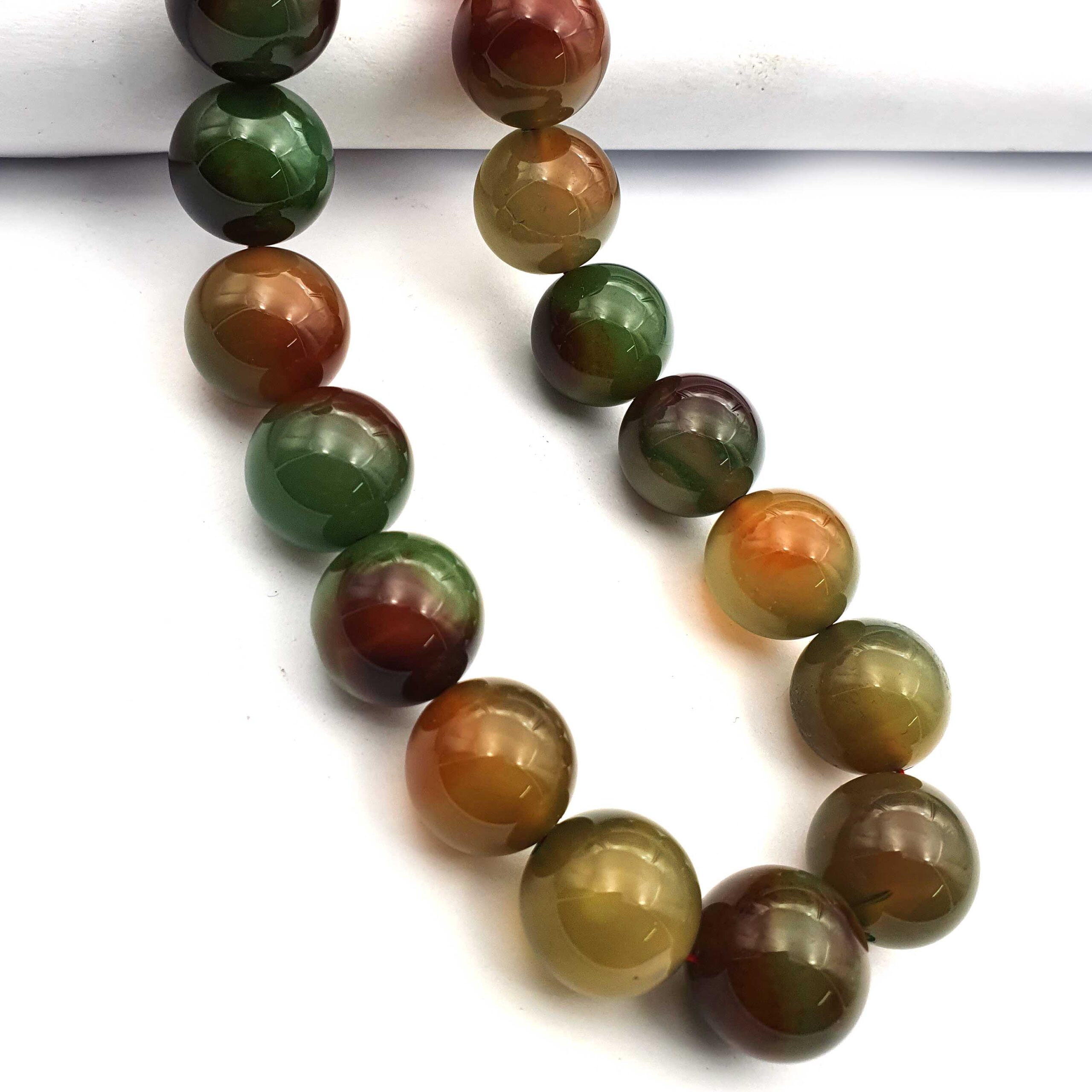 Natural Green & Orange Smooth Agate Round Balls Gemstone Beads 14-20 mm 18 Inch