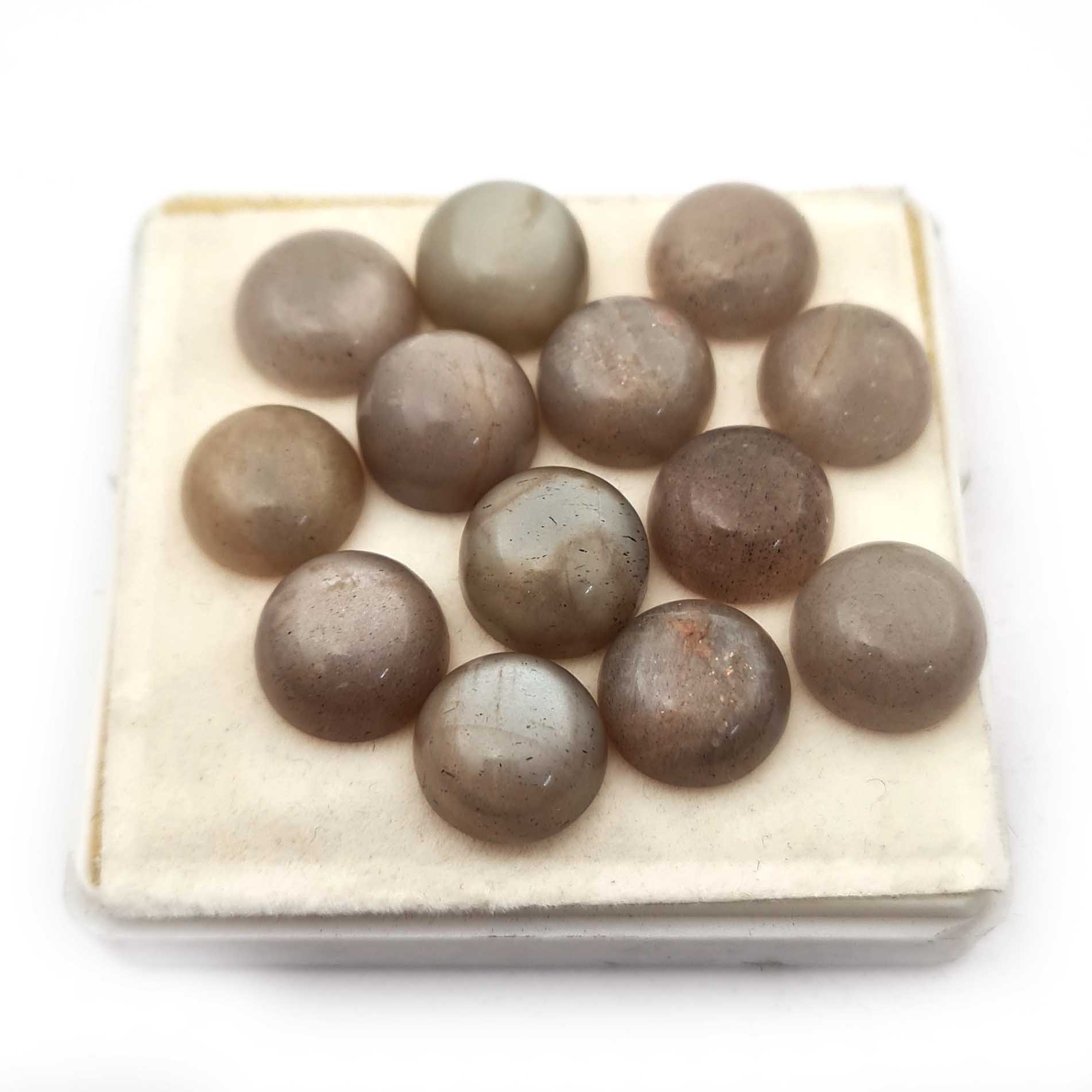 Natural Grey Moonstone Round Cabochon Loose Gemstone Lot 13 Pcs 13 MM 101 CT