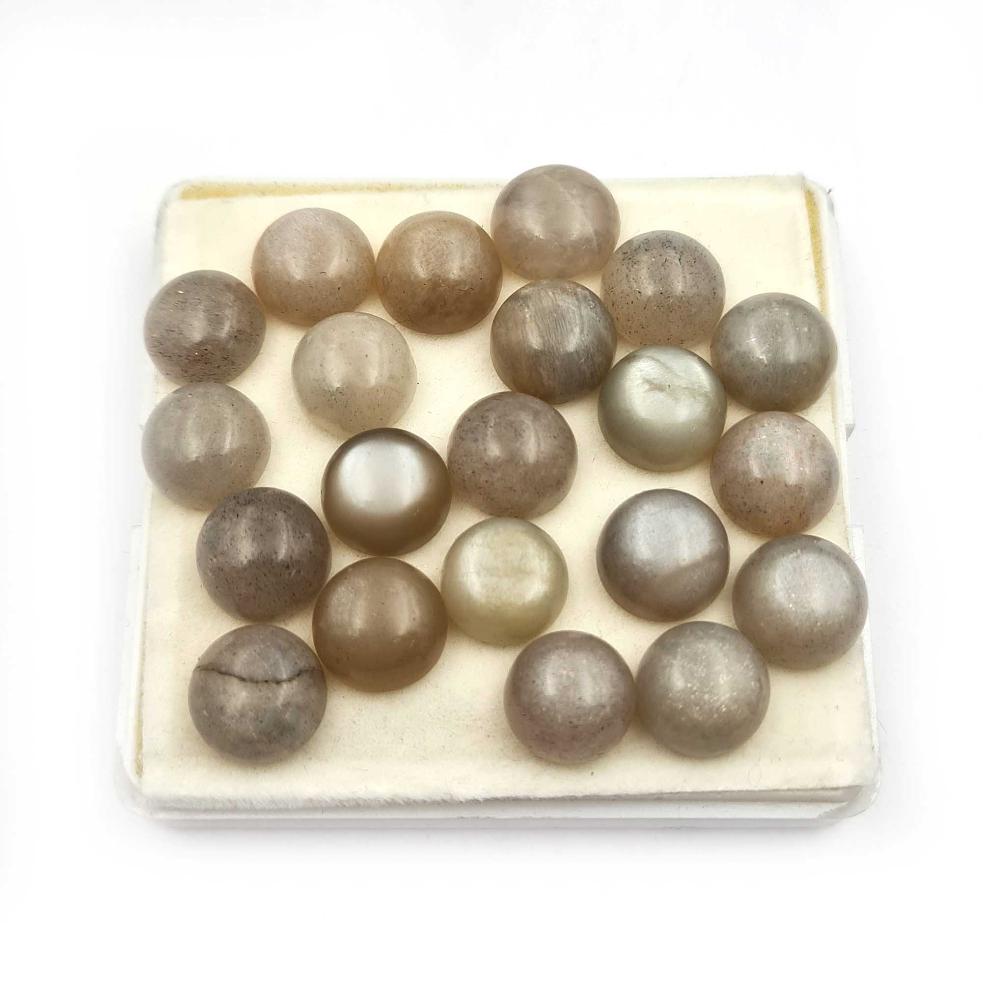 Natural Grey Moonstone Round Cabochon Loose Gemstone Lot 20 Pcs 11 MM 103 CT