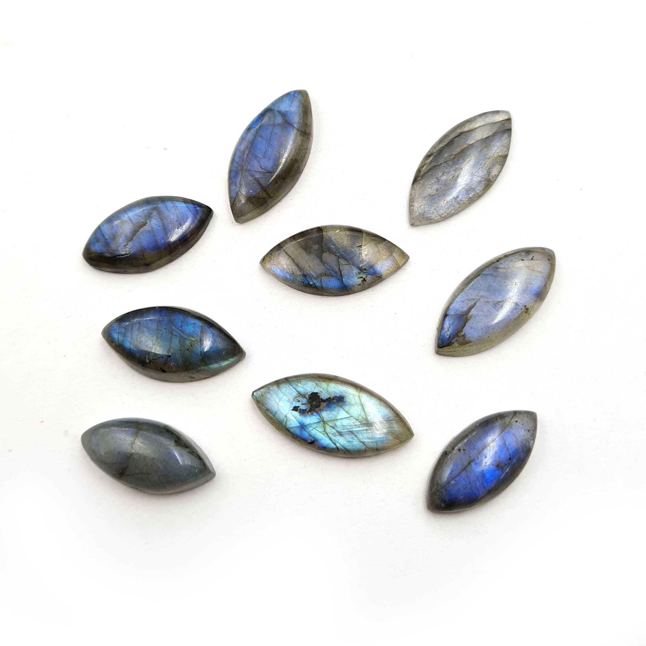 Home Labradorite Natural Labradorite Marquise Cabochon Fire Gemstone 9 Pcs 10×20-11×24 MM 78 CT