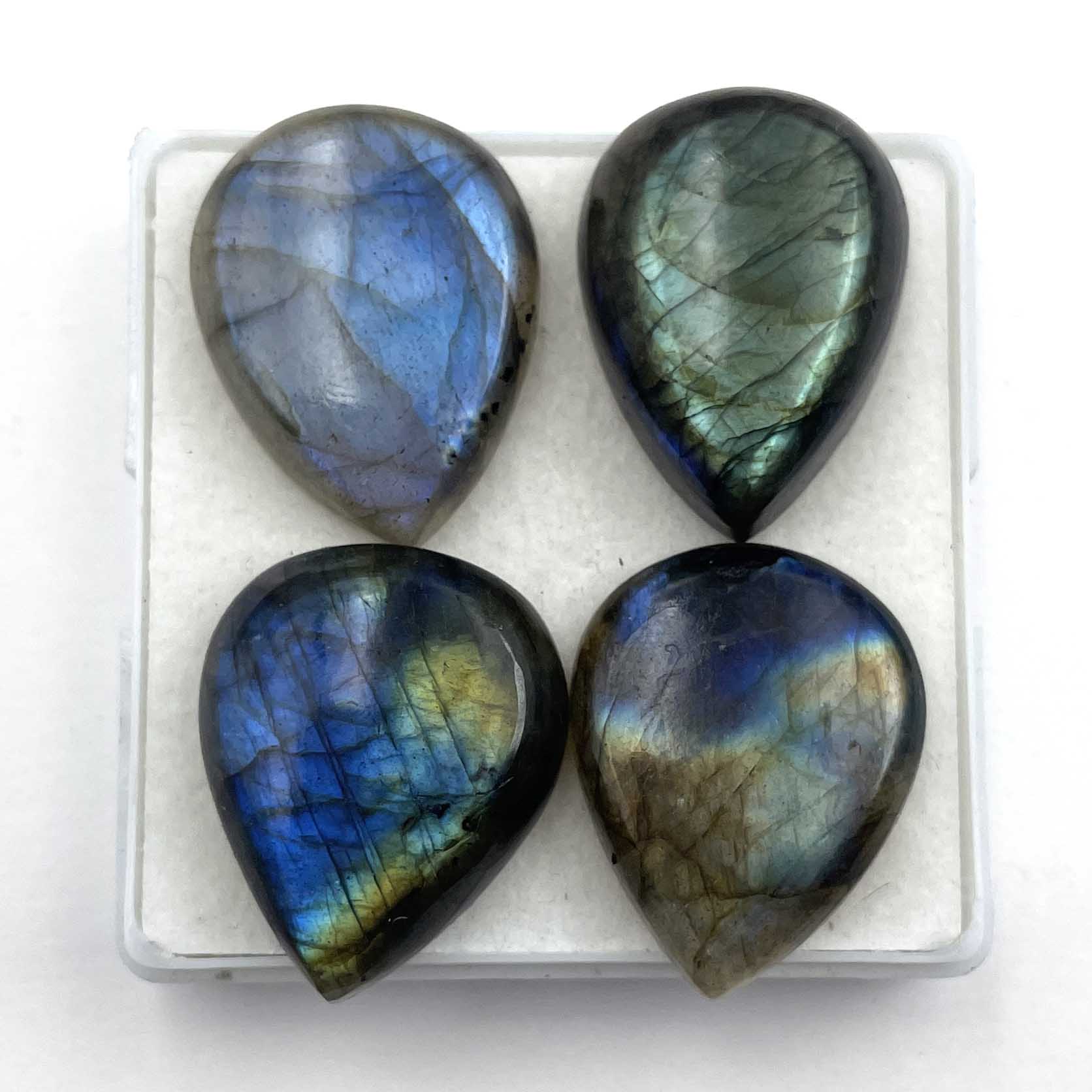 Home Labradorite Natural Labradorite Pear Cabochon Loose Stone 4 Pcs 19.5*25.5-20*26 MM 103 CT