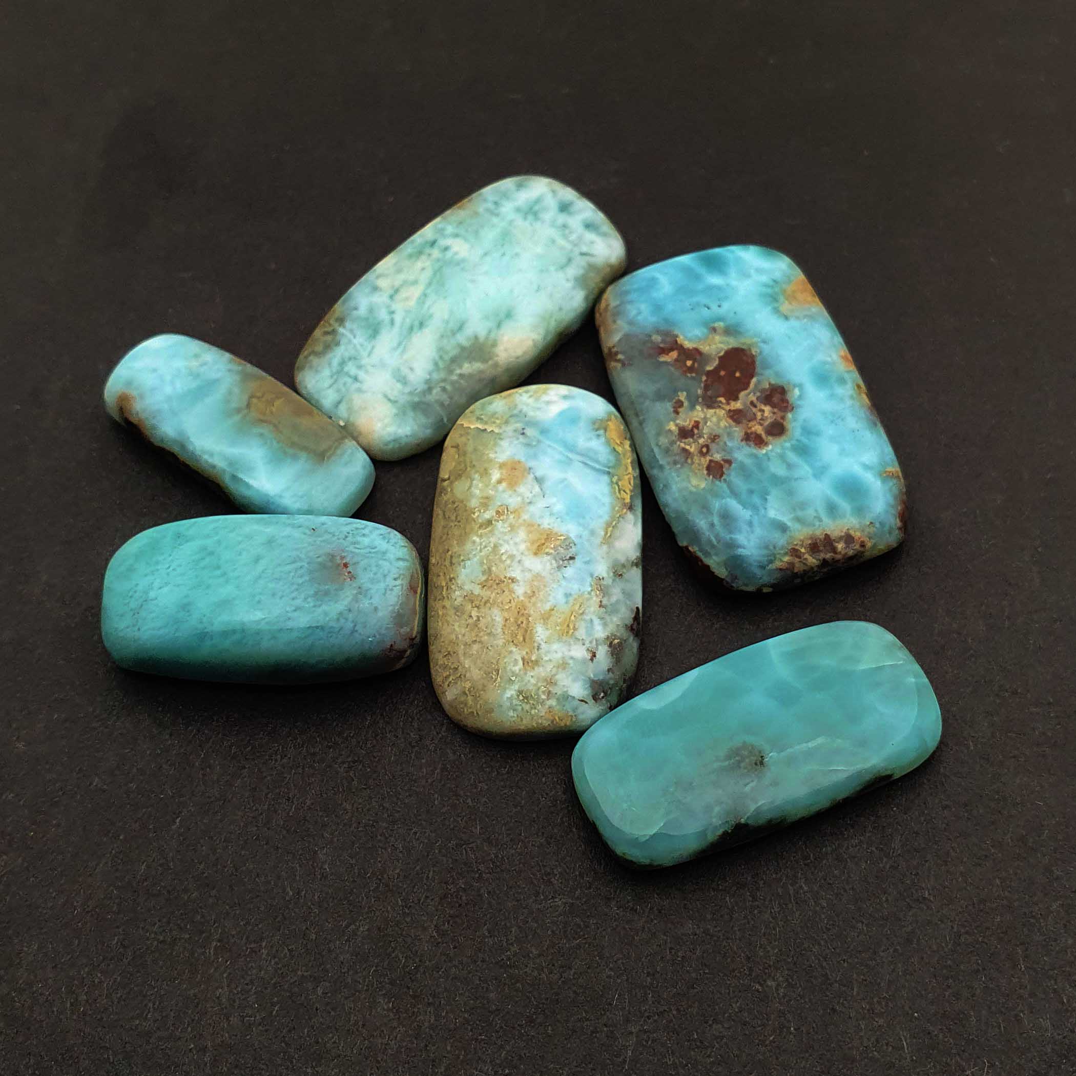 Natural Larimar Fancy Cabochon Loose Gemstone Lot 6 Pcs 8-25*13-35 MM 100 CT