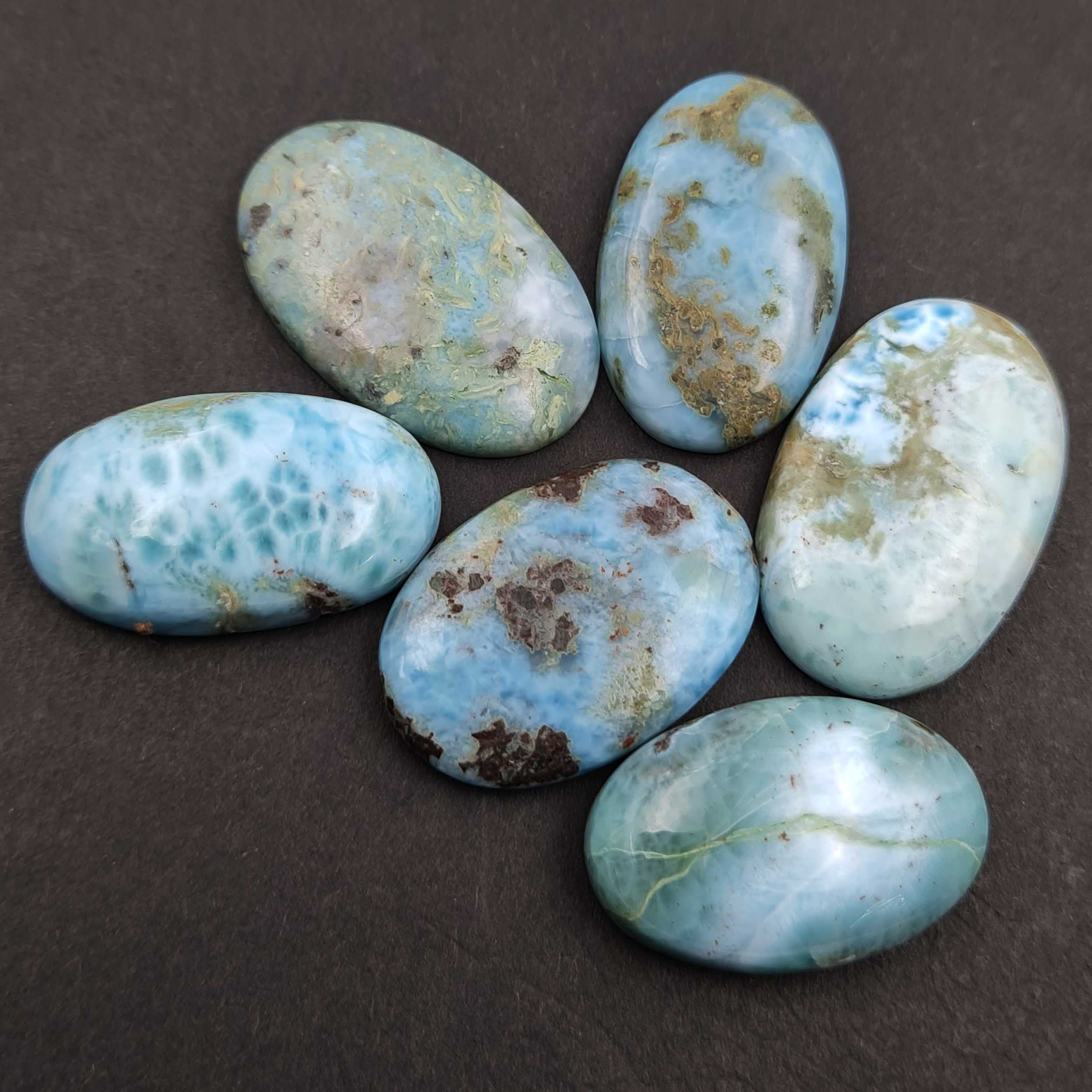 Natural Larimar Oval Cabochon Loose Gemstone Lot 40 Pcs 6*8 MM 62 CT
