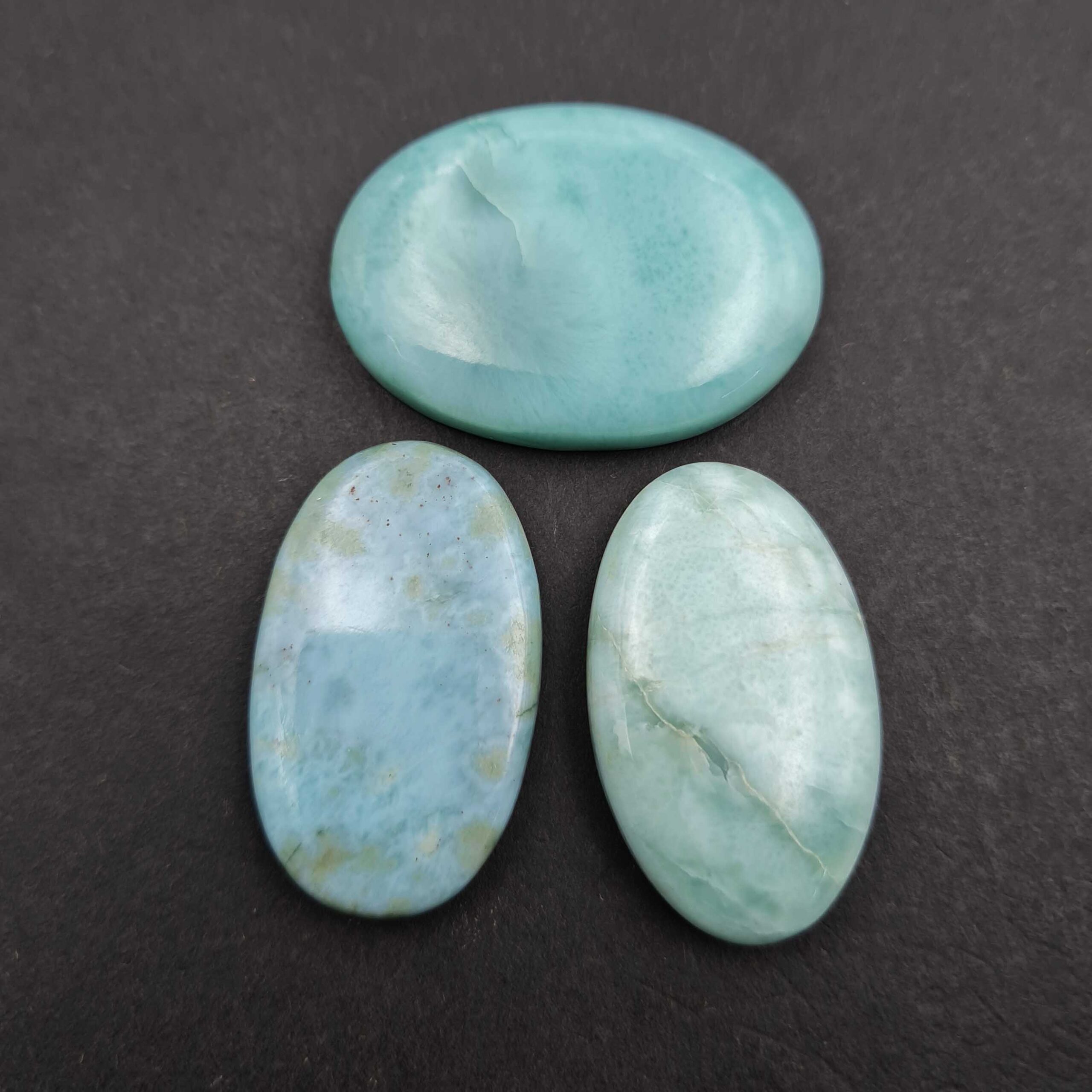 Home Larimar Natural Larimar Oval Cabochon Loose Gemstone Lot 3 Pcs 22×36-28×40 MM 177 CT
