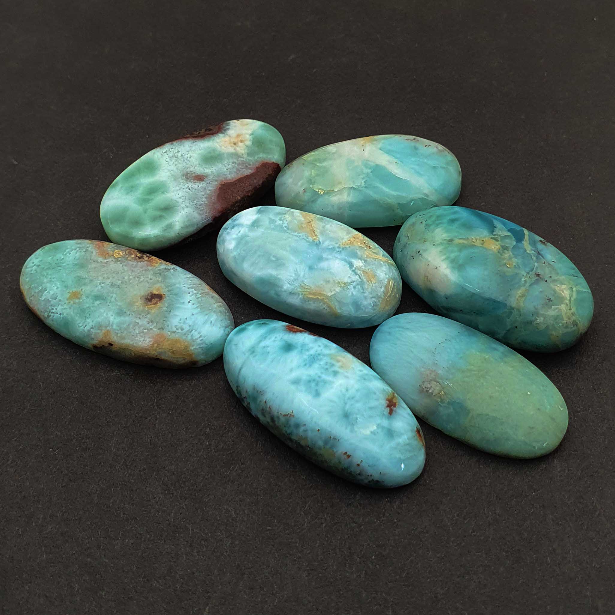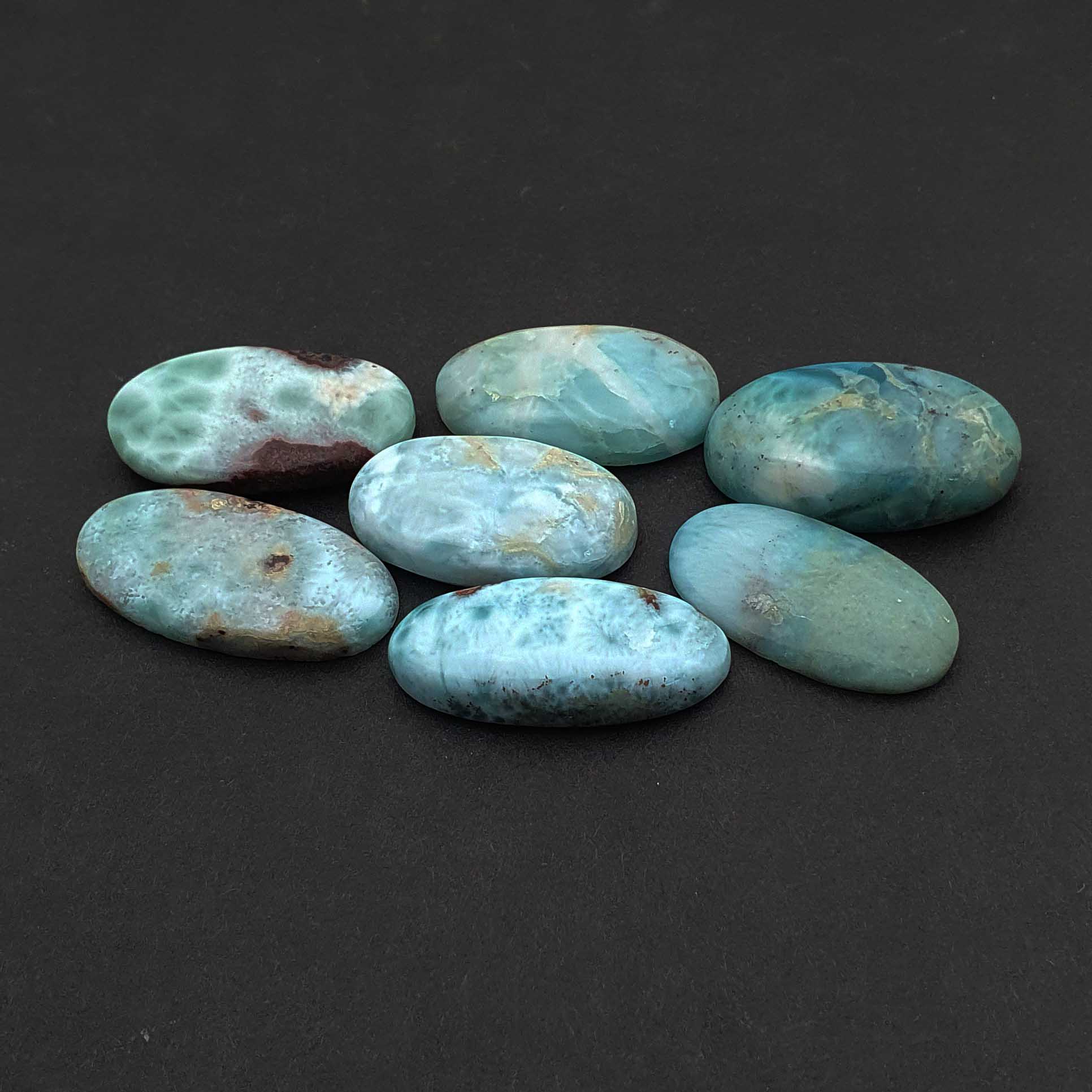 Be the first to review “Natural Larimar Oval Cabochon Loose Gemstone Lot 7 Pcs 13-15*25-28 MM 148 CT” Cancel reply