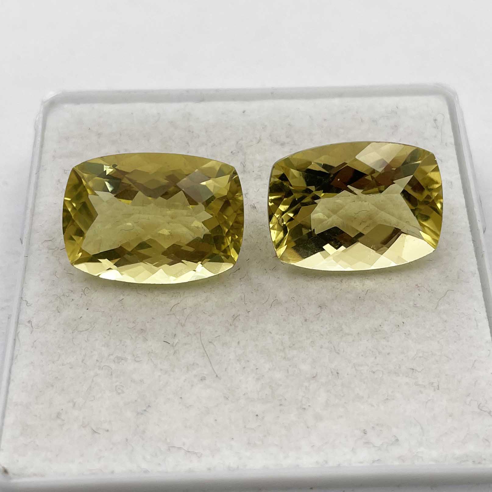 Home Quartz Natural Lemon Quartz Cushion Checker Cut Loose Stone Lot 2 Pcs 13*18 MM 26 CT
