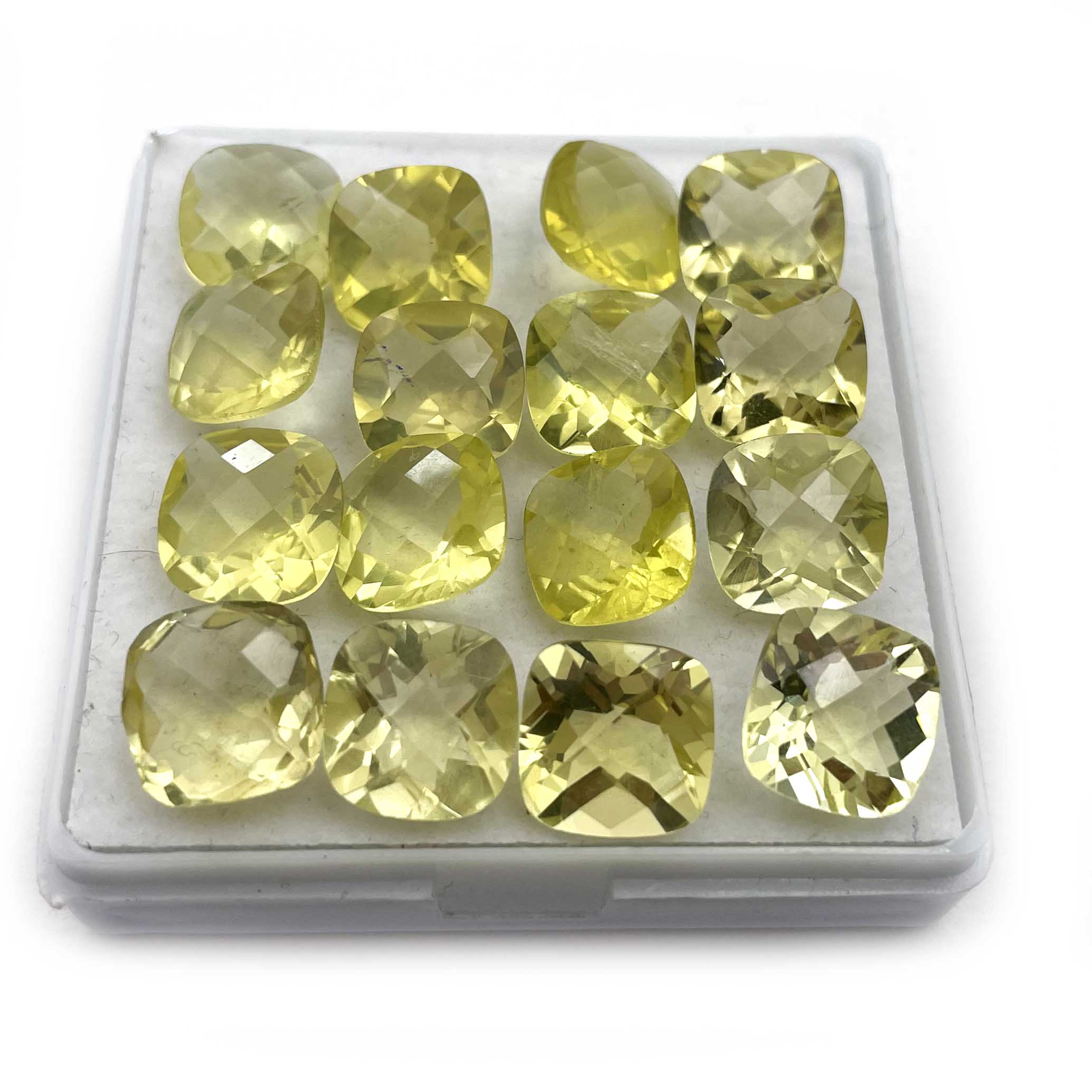 Natural Lemon Quartz Cushion Checker Cut Stone Lot 15 Pcs 10 MM 50 CT