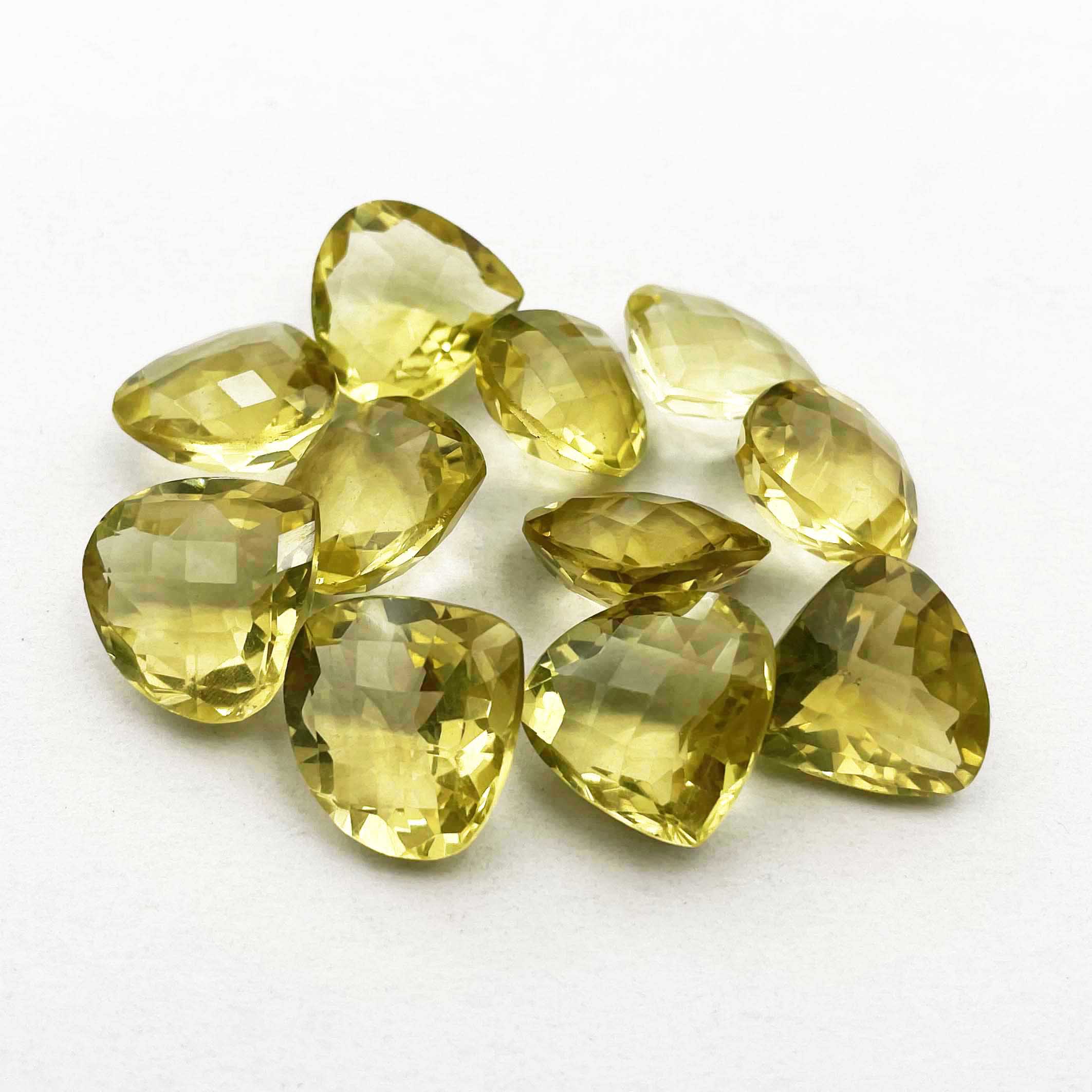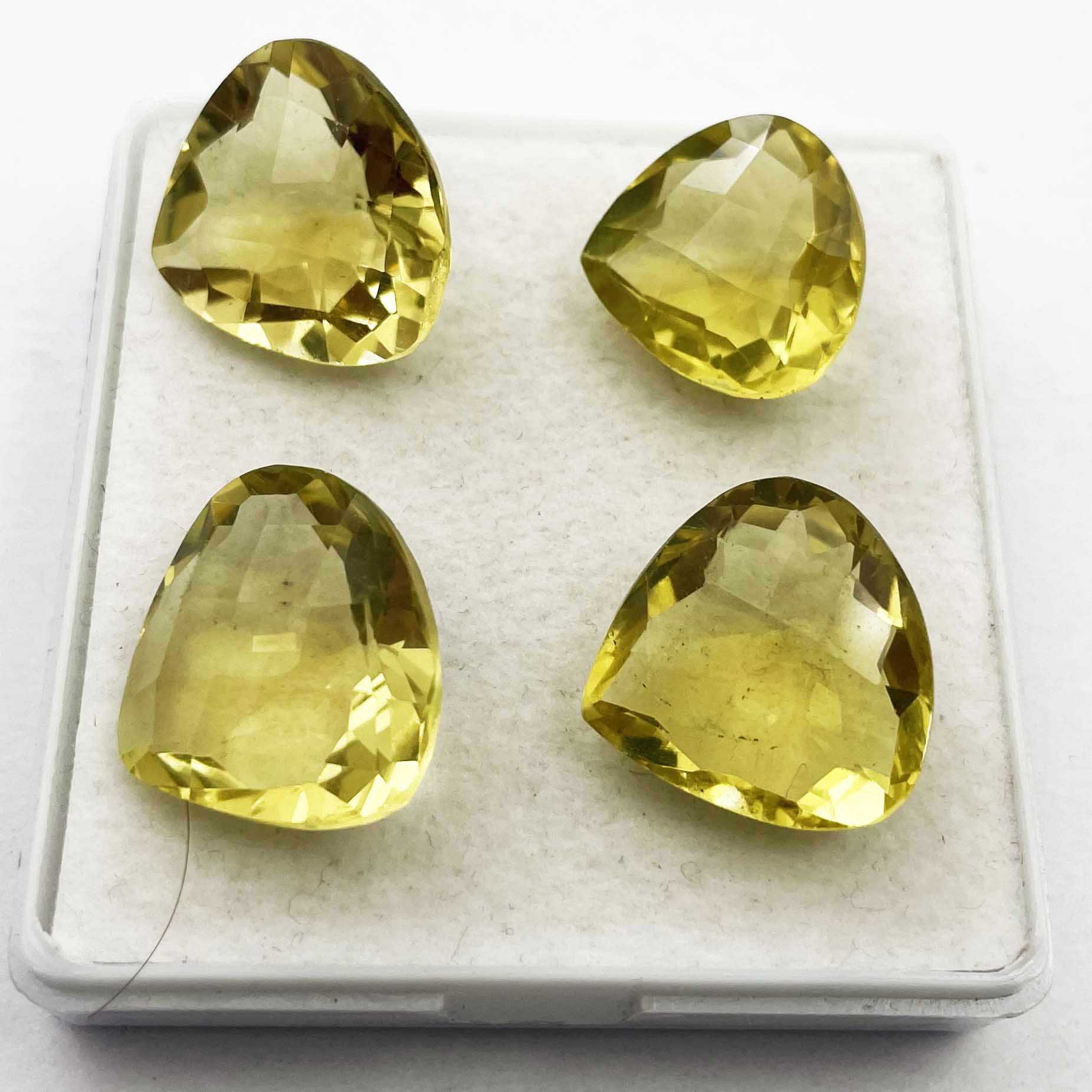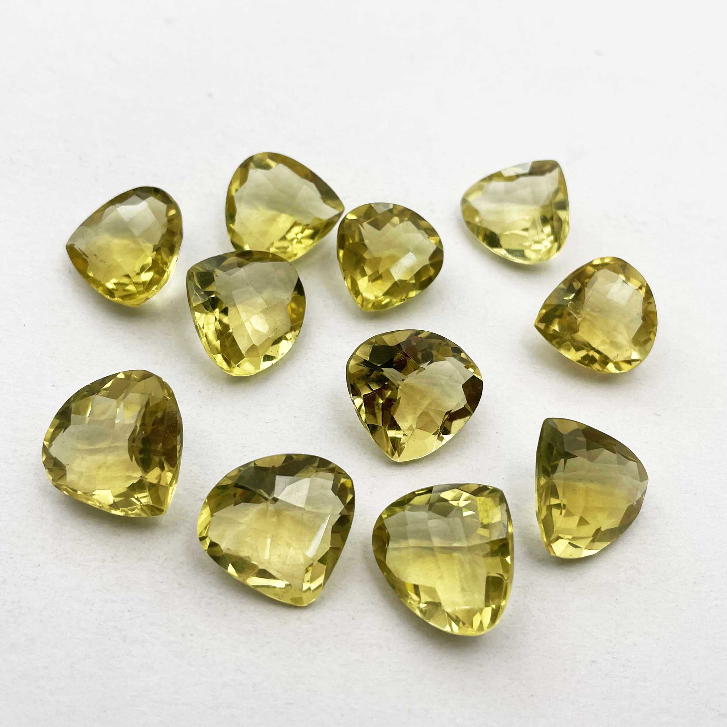 Natural Lemon Quartz Heart Checker Cut Loose Gemstone Lot 12 Pcs 13-15 MM 107 CT
