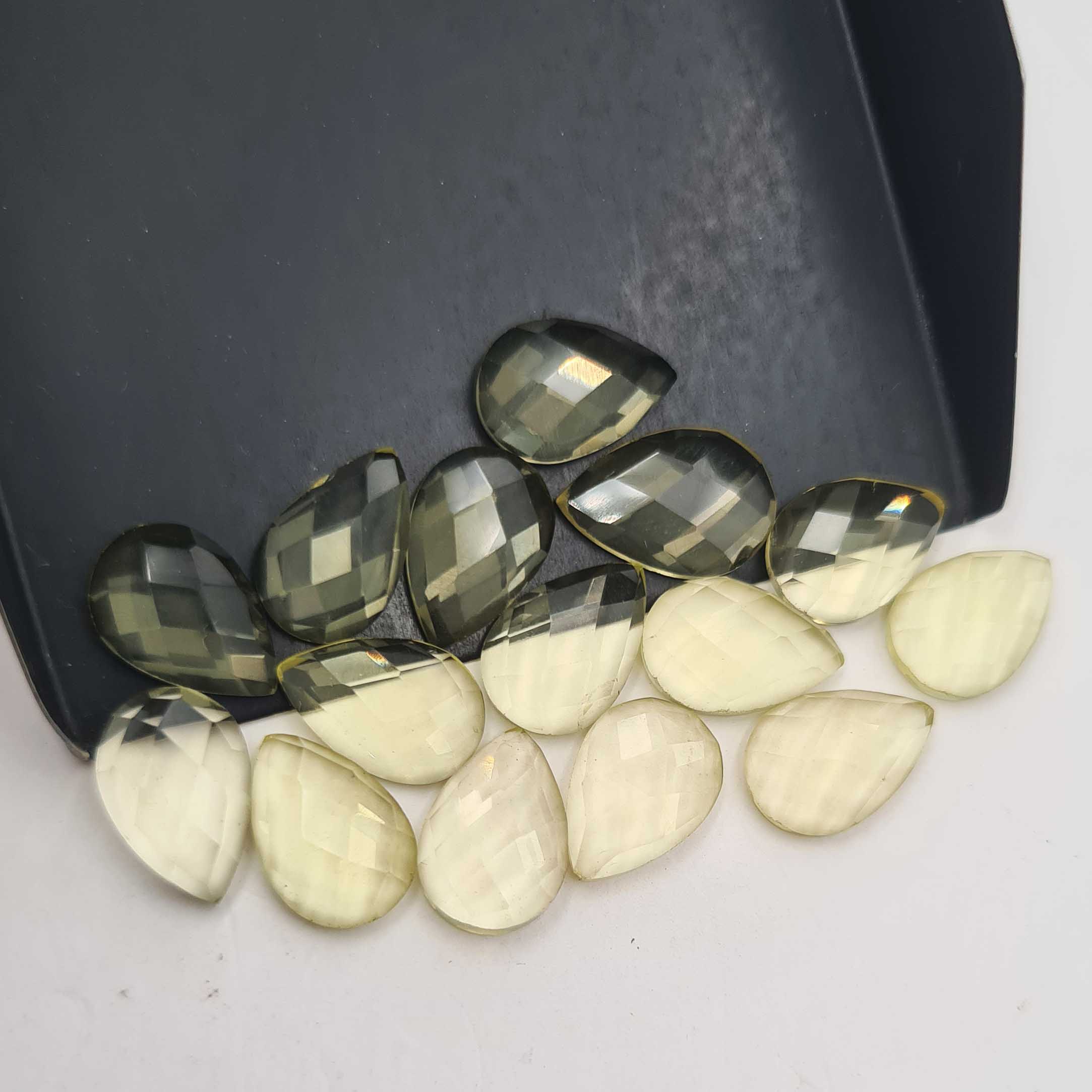 Home Quartz Natural Lemon Quartz Pear Checker Cut Gemstone Lot 15 Pcs 8*12 MM 38 CT
