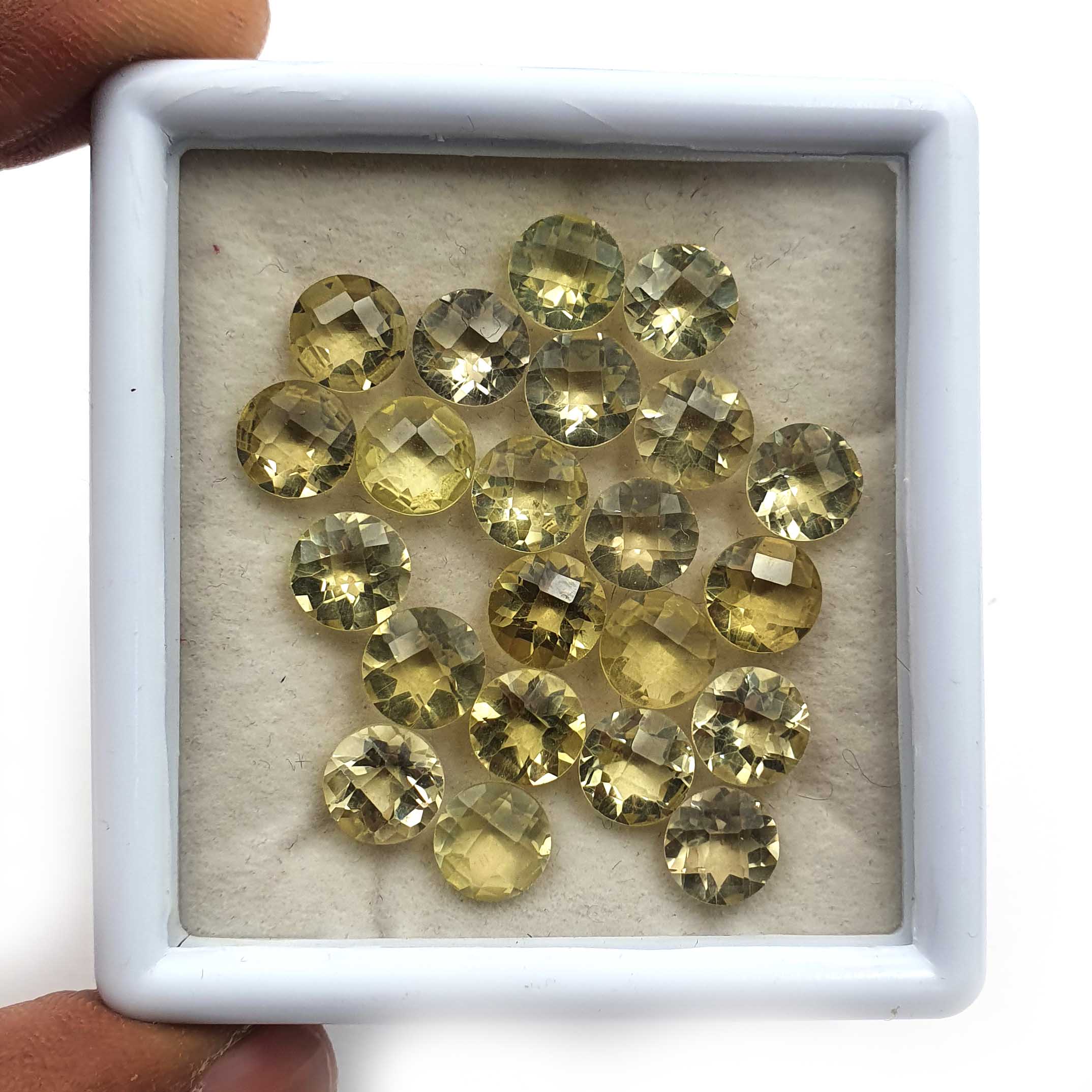 Natural Lemon Quartz Round Checker Cut Loose Gemstone Lot 22 Pcs 8 MM 37 CT